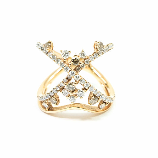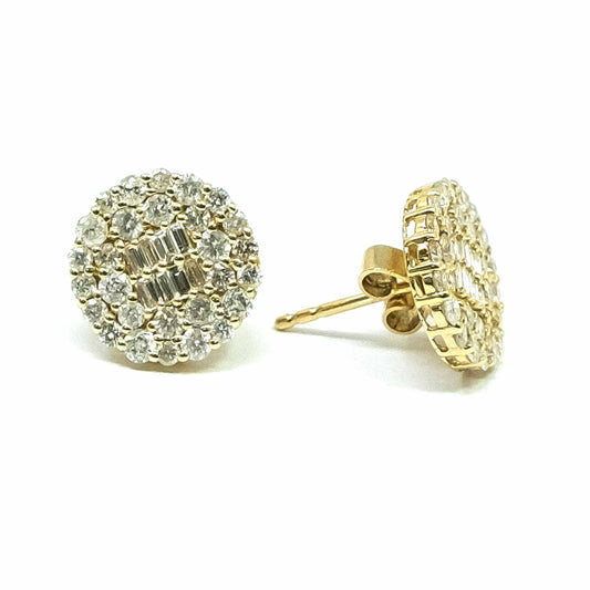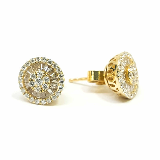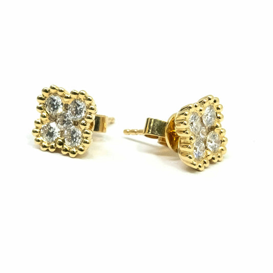 18K Yellow Gold Half Flower Diamond Earring