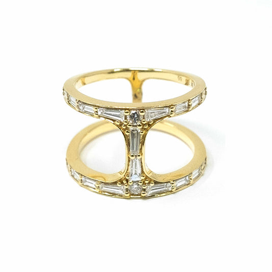 14K Yellow Gold Round Diamond and Baguettes Stud Earrings