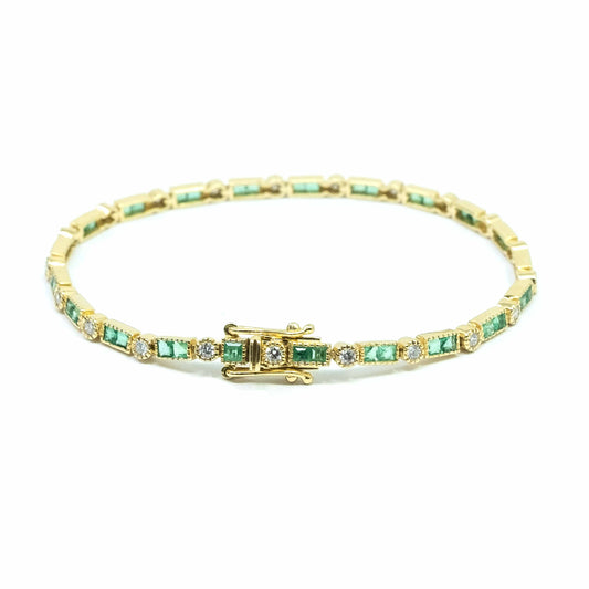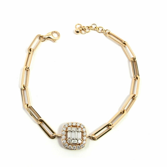 18K Yellow Gold Baguette Round Diamond Stud Earrings