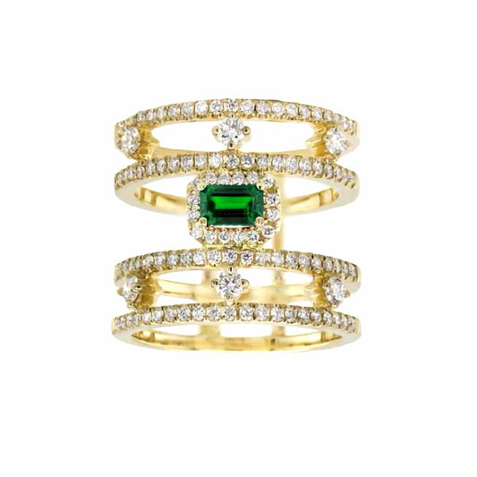 18K Yellow Gold, Diamond and Emerald Estate Ring