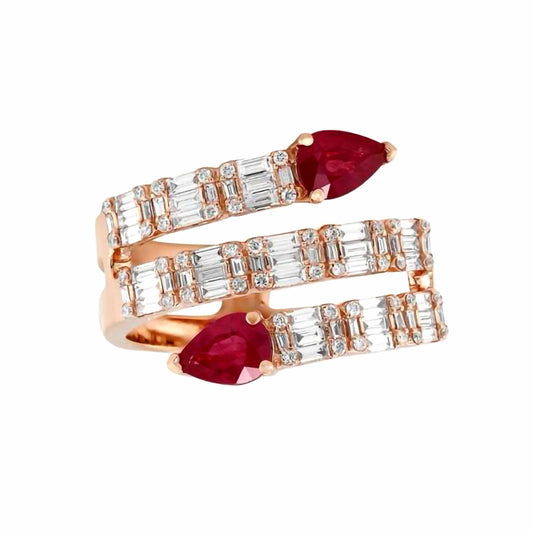18K Pink Gold, Diamond and Ruby Estate Snake Ring