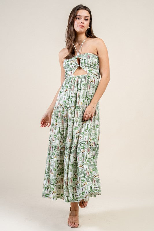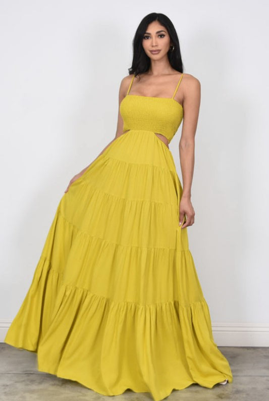 Mable Eyelet Lace Ruffle Sleeve Tierde Midi Dress