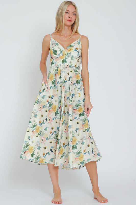 Ina Floral Lace Belted Sleeveless Midi Dress
