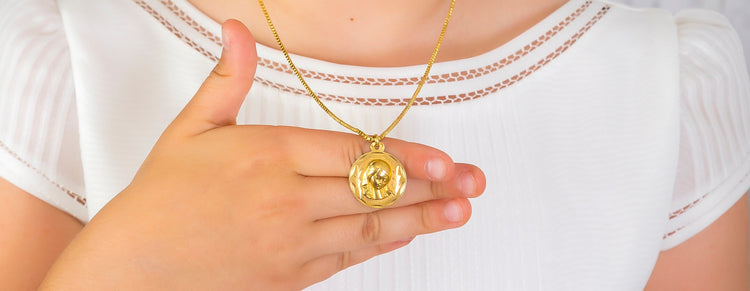14K Yellow Gold Virgin Mary Children Pendant