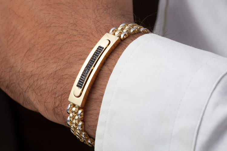 18K Yellow Gold and Diamond Razor Threaded Man Bracelet