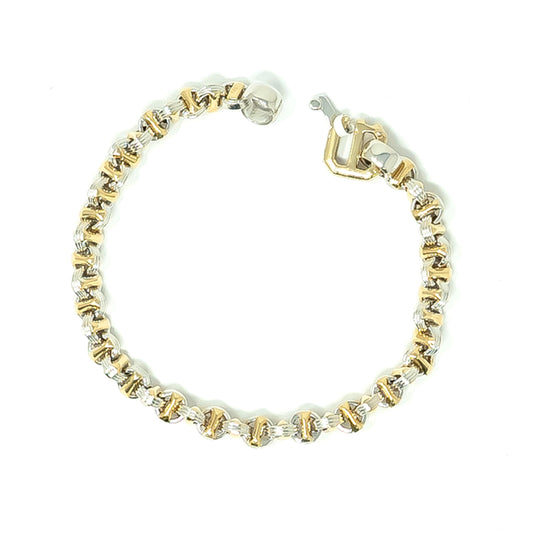 14K Yellow and White Gold Cuff Woven Man Bracelet