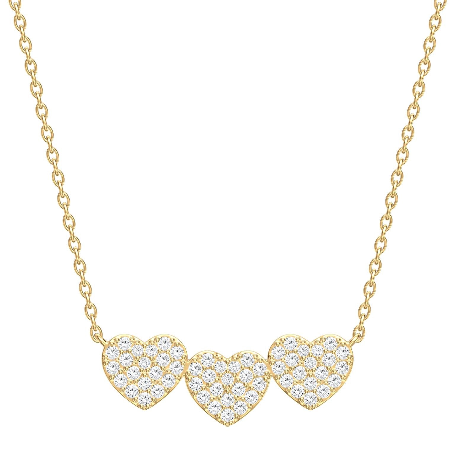 14K Yellow Gold 3 Hearts Necklace