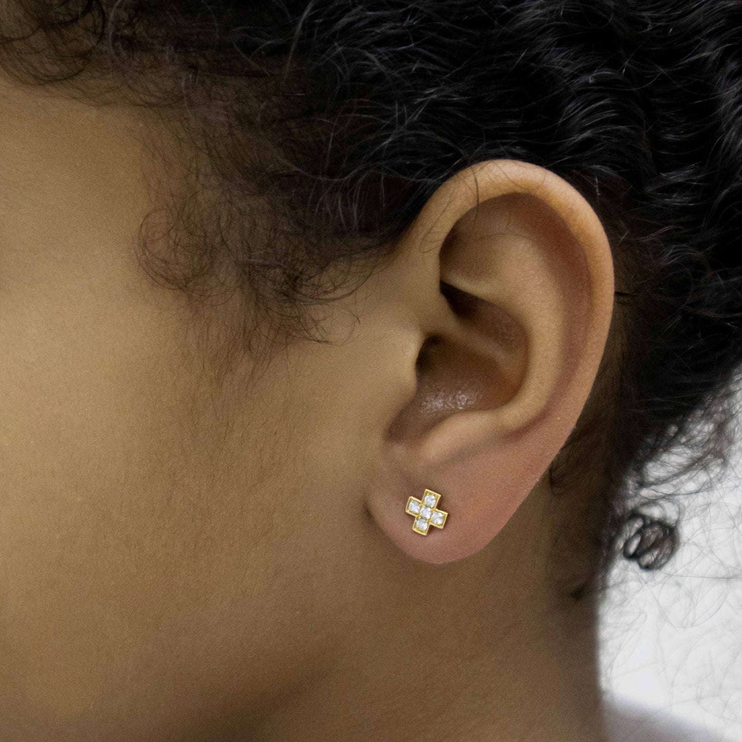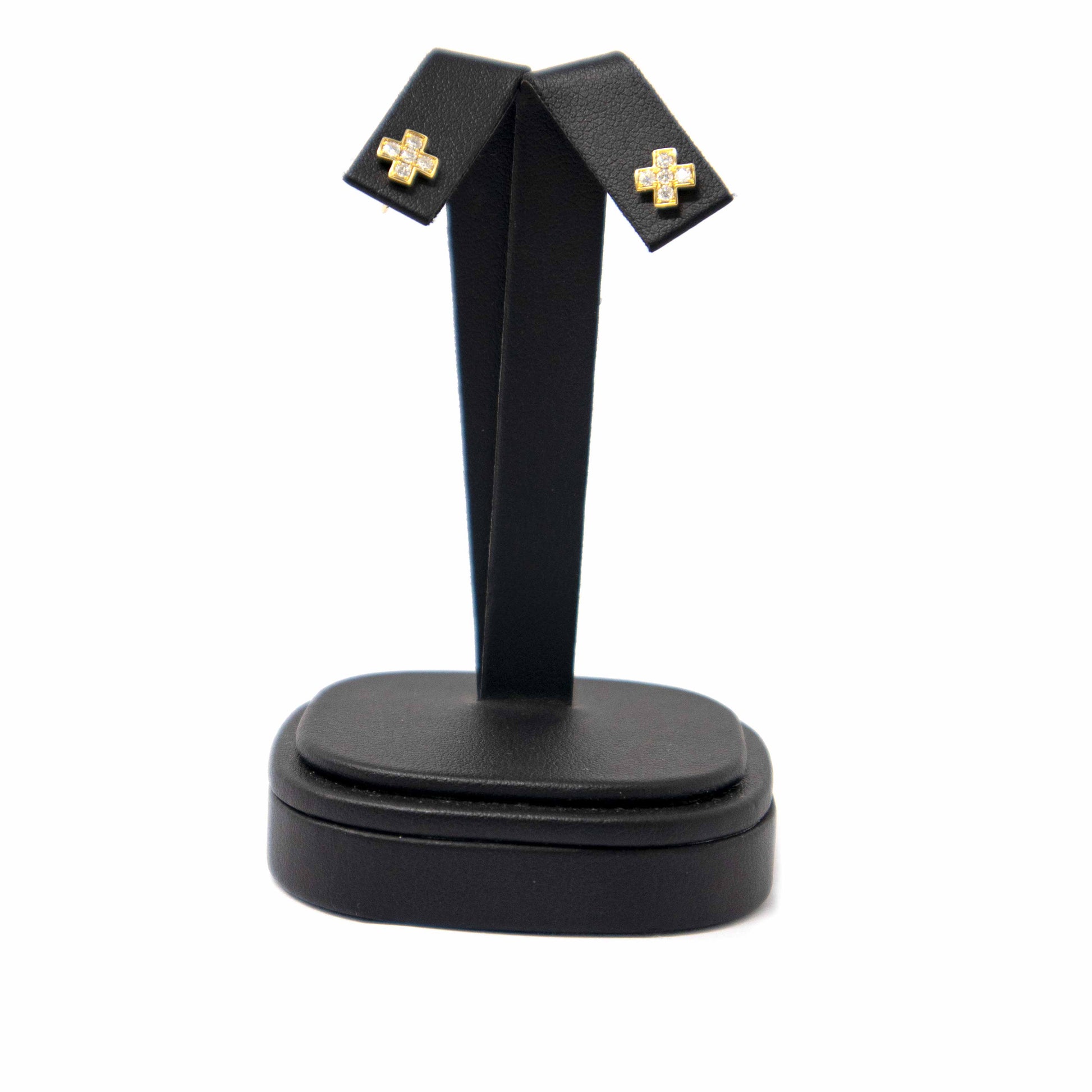 Elevate your style with these stunning 14K yellow gold diamond cross earrings. Crafted from luxurious 14 karat yellow gold, these elegant earrings feature sparkling diamonds set in a classic cross design. Perfect for adding a touch of sophistication and spirituality to any outfit, these earrings are versatile for both everyday wear and special occasions.