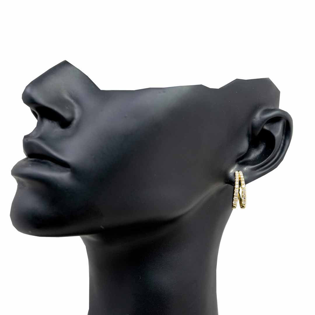 14k Yellow Gold Double Hoop Diamond Earrings.