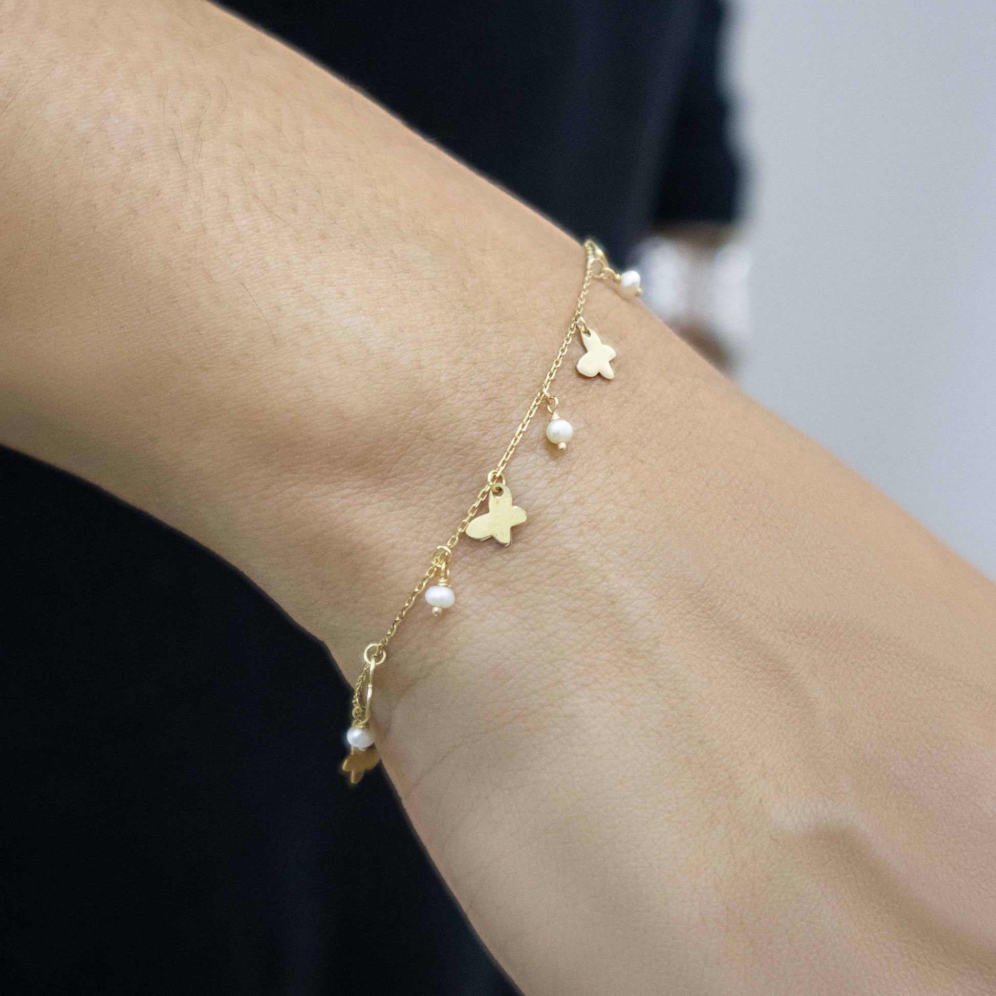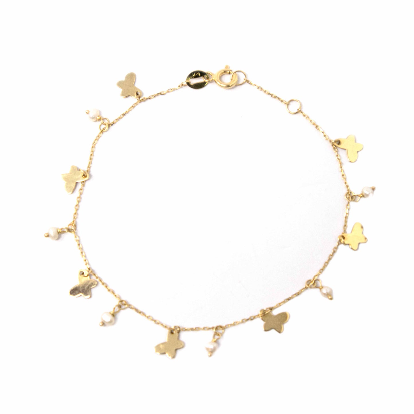 14k Yellow Gold Butterflies and Pearl Bracelet