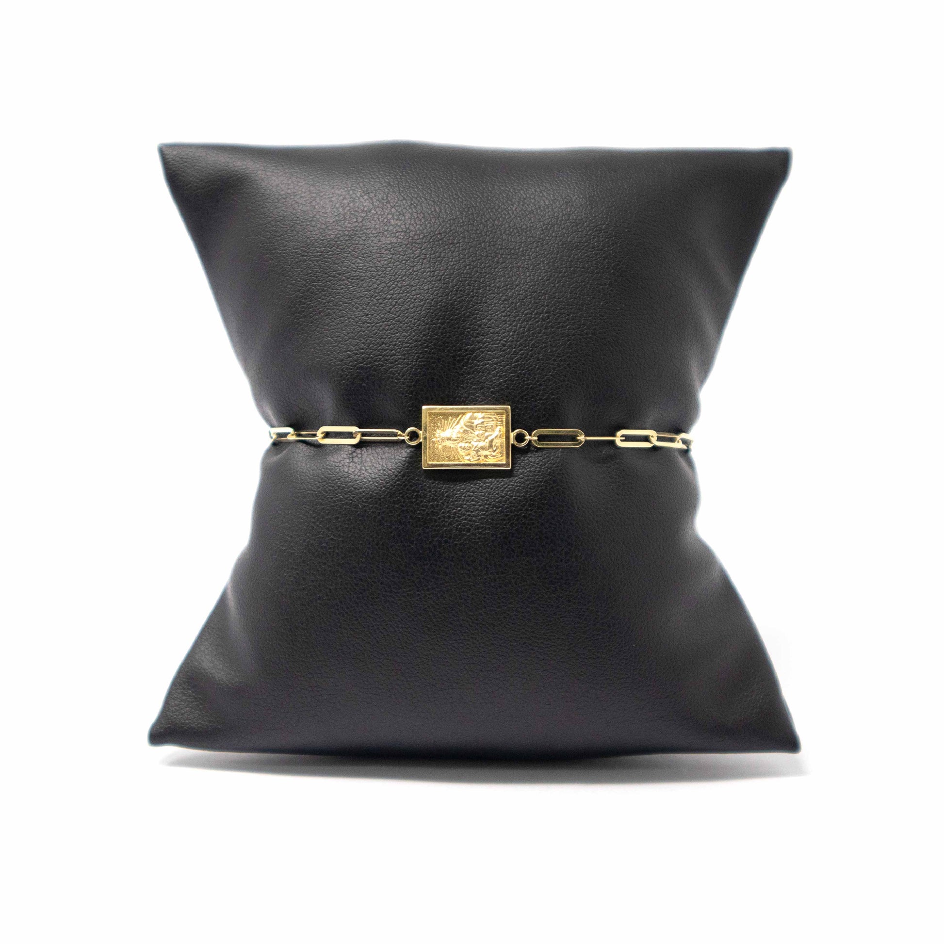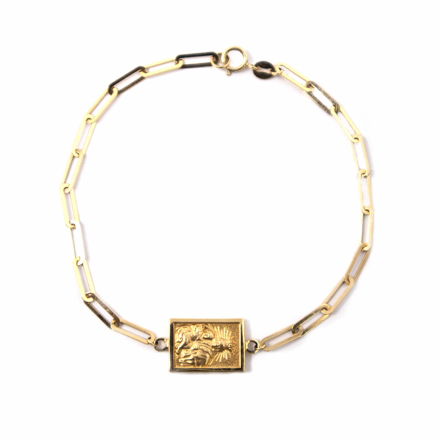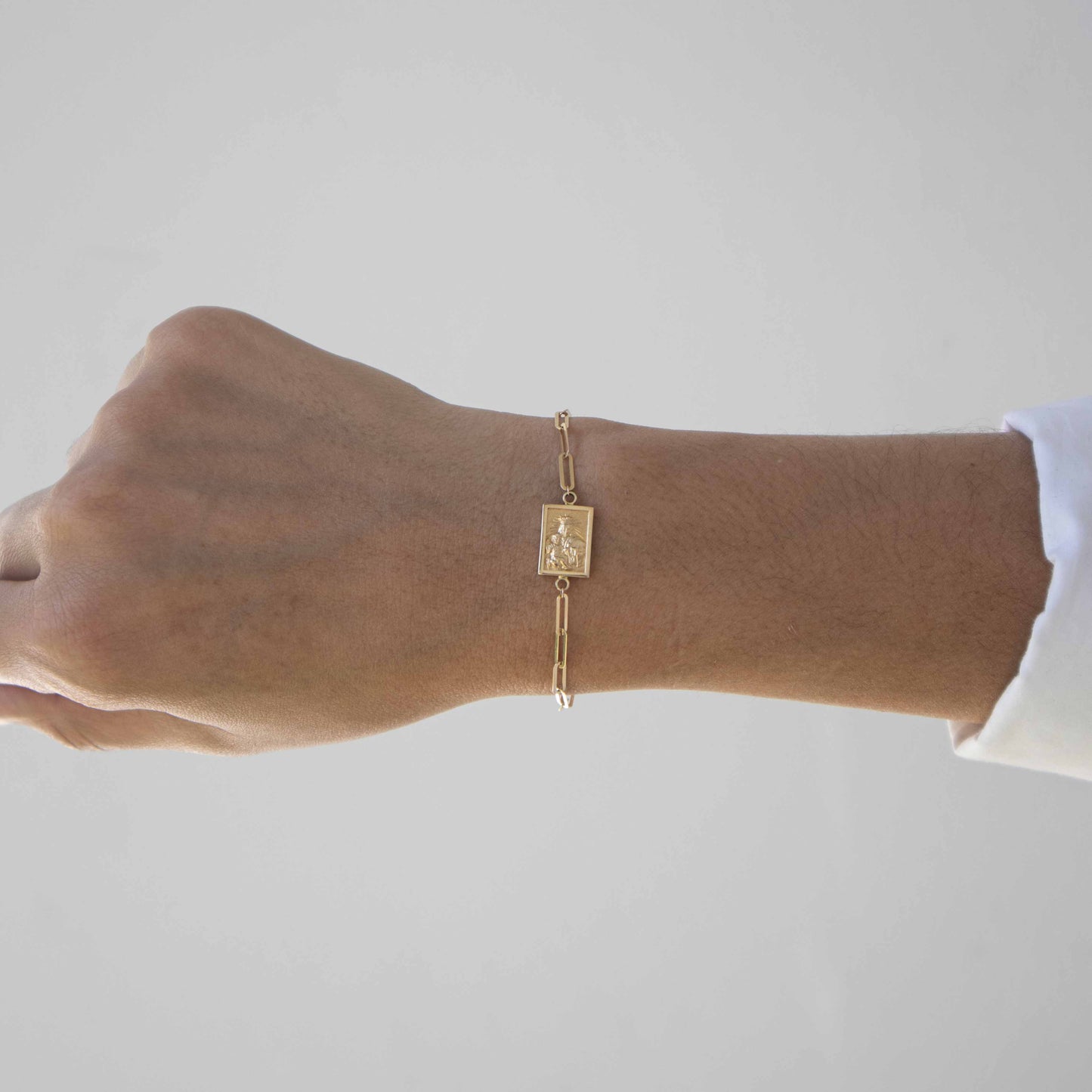 14K Yellow Gold Our Lady of Mount Carmel Paperclip Bracelet