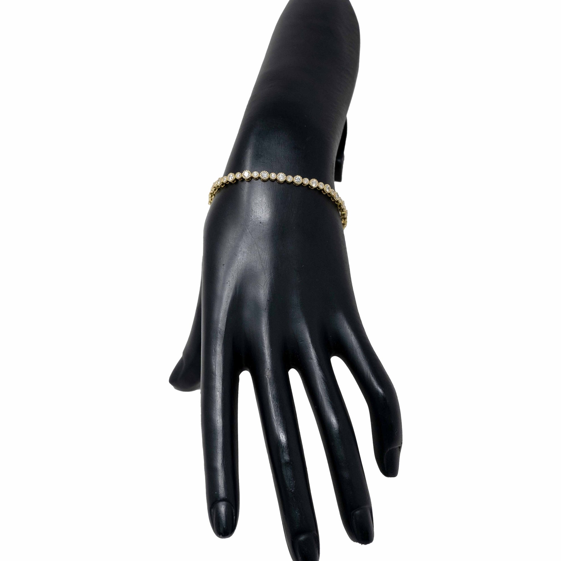 18k Circle Diamond Tennis Bracelet. Round embedded diamonds in a vintage setting makes this bracelet an identity of its own.