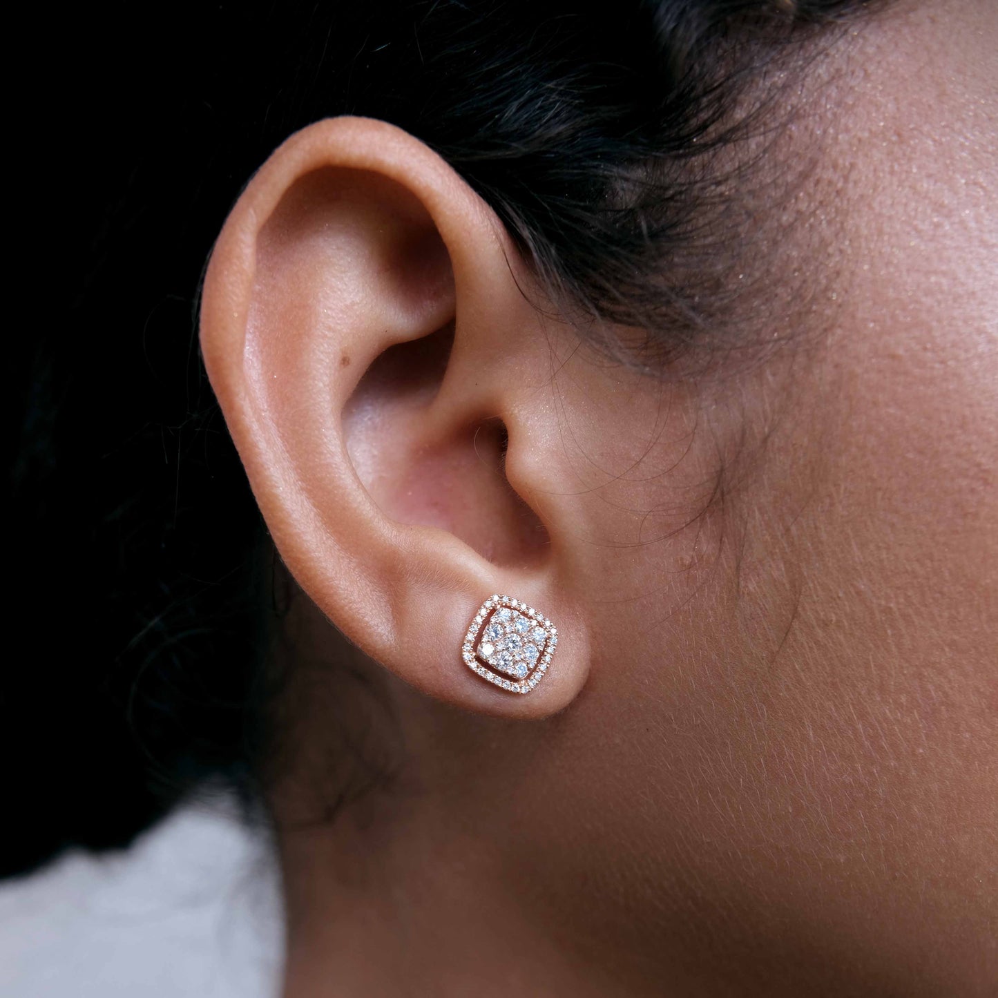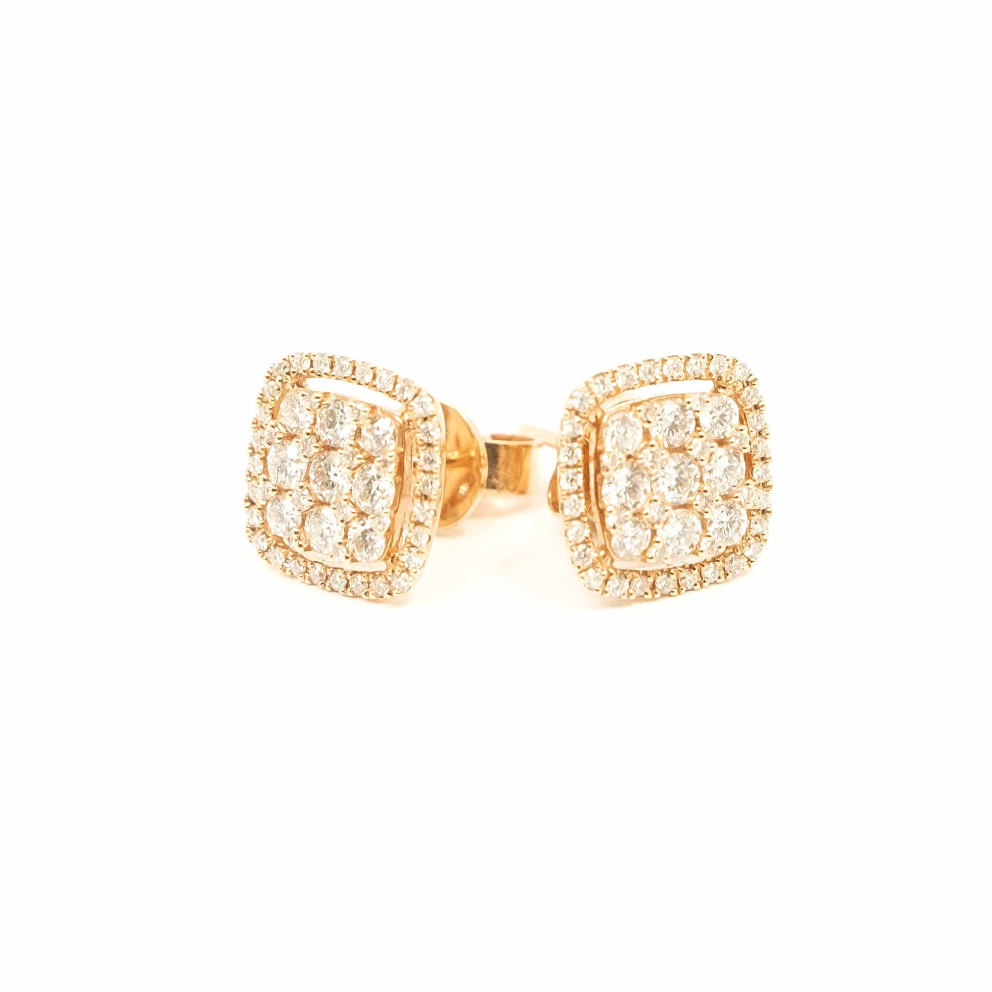 18k Rose Gold & Diamond Cluster Square Earstuds
