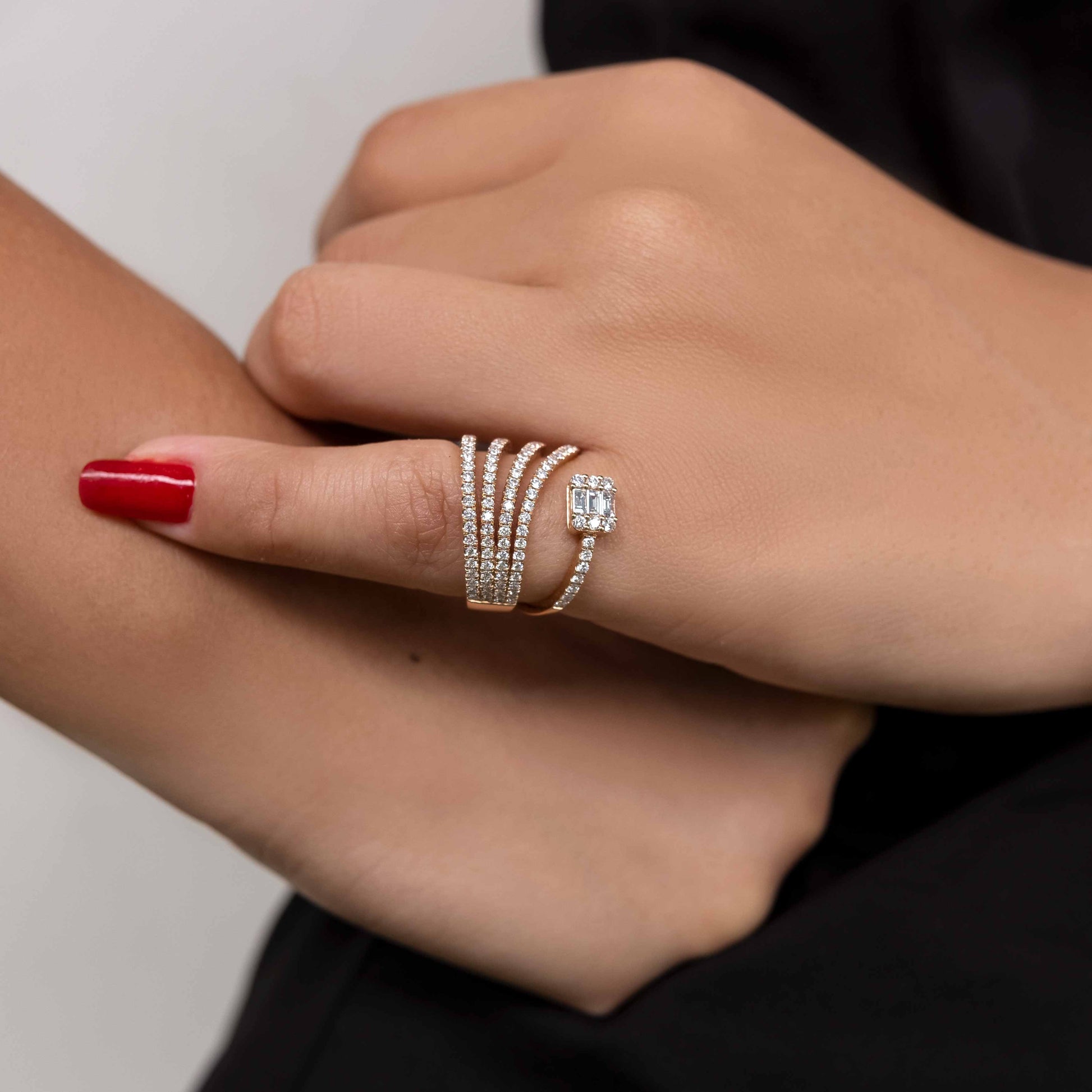 Unvail your daring side with the spiral diamond ring, effortlessly combines bold design with timeless elegance. A spiral design that ends with a touch of baguettes, adding a touch of class. It is more than just an accessory. It is a statement piece that sets you apart.