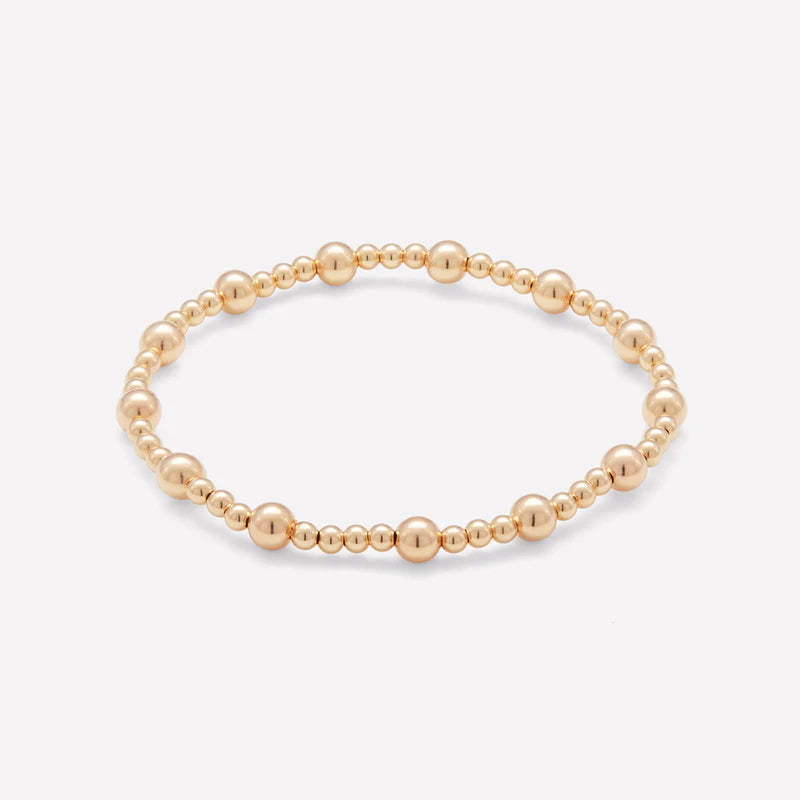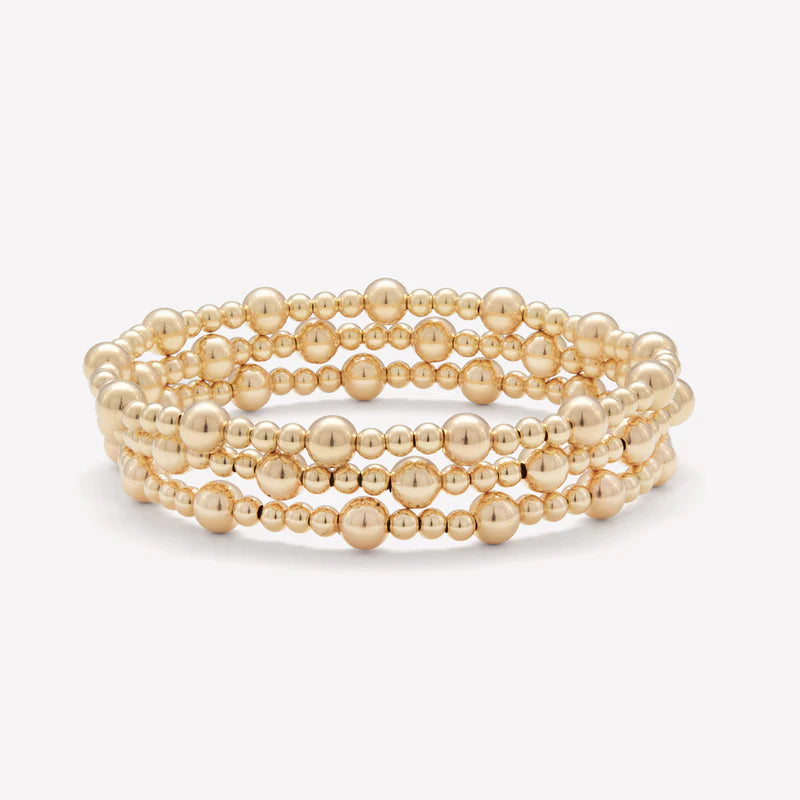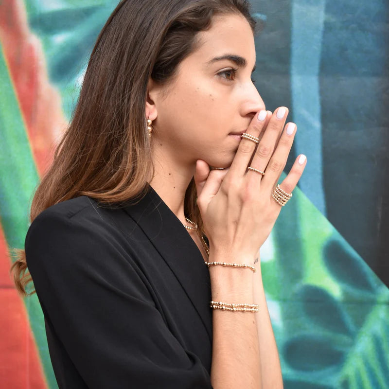 Expertly crafted with a yellow gold plated beaded design, this bracelet for women features an interesting mix of 3mm and 5mm beads - creating a stunning and sophisticated aesthetic. Effortlessly elegant, the ALEXA BRACELET will add a note of refined elegance to any ensemble.