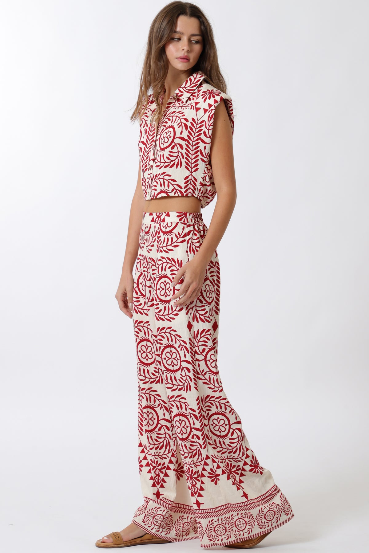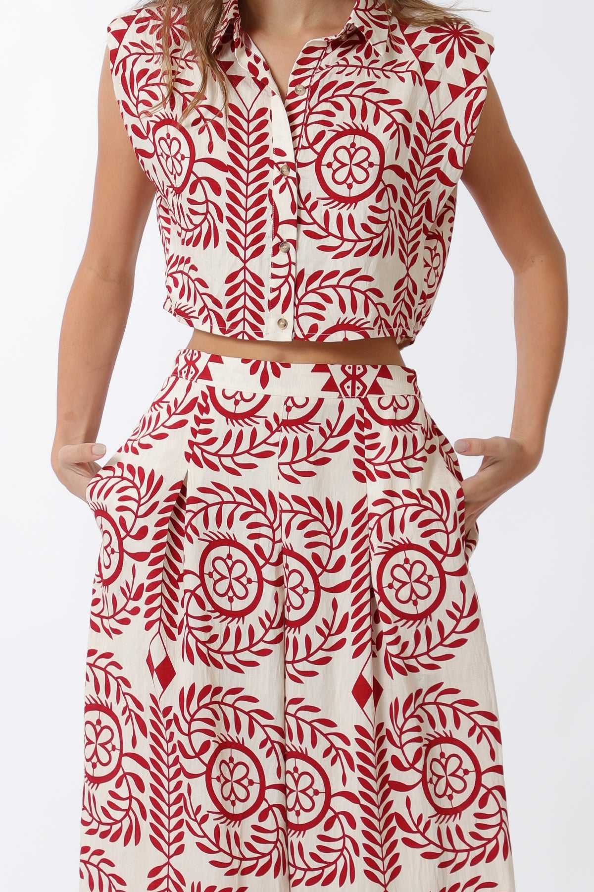 Aakaa Shoulder Pad Button Top & Long Pants Set