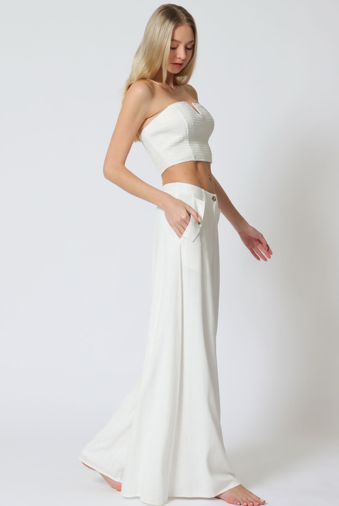 Aakaa Tube Smocked Top & Hight Waisted the Pockets Long Pant Set