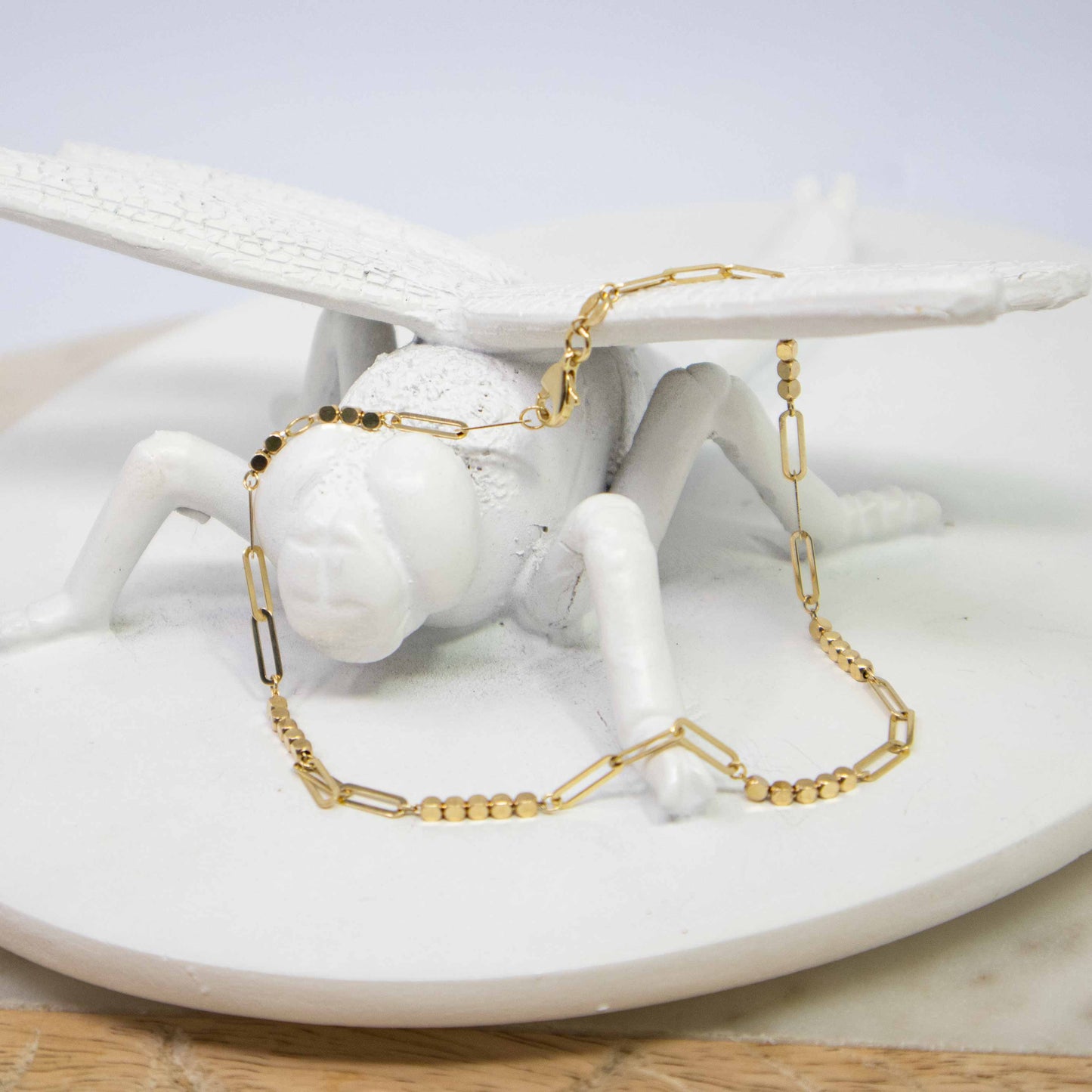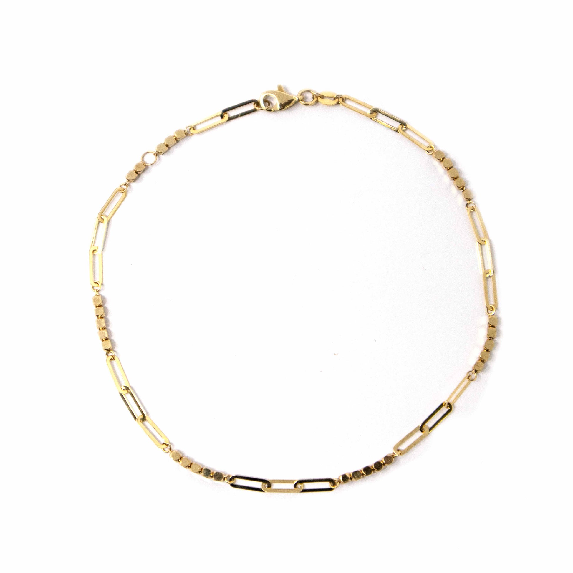 14K Yellow Gold Semi Bead and Paperclip Anklet