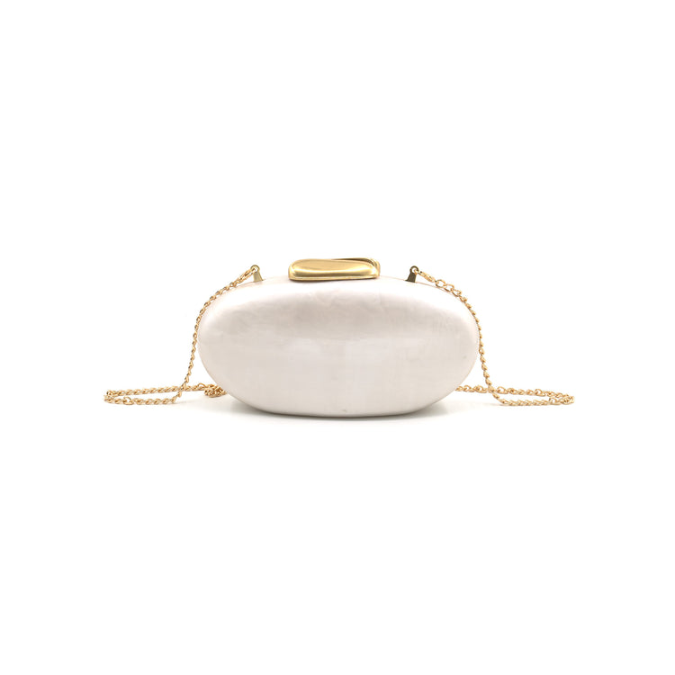 This chic oval acrylic clutch is the perfect blend of elegance and modern design. Featuring a sleek silhouette and a compact structure.