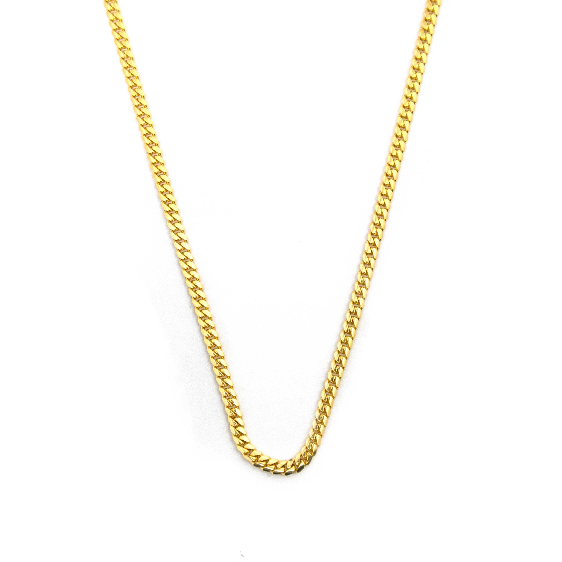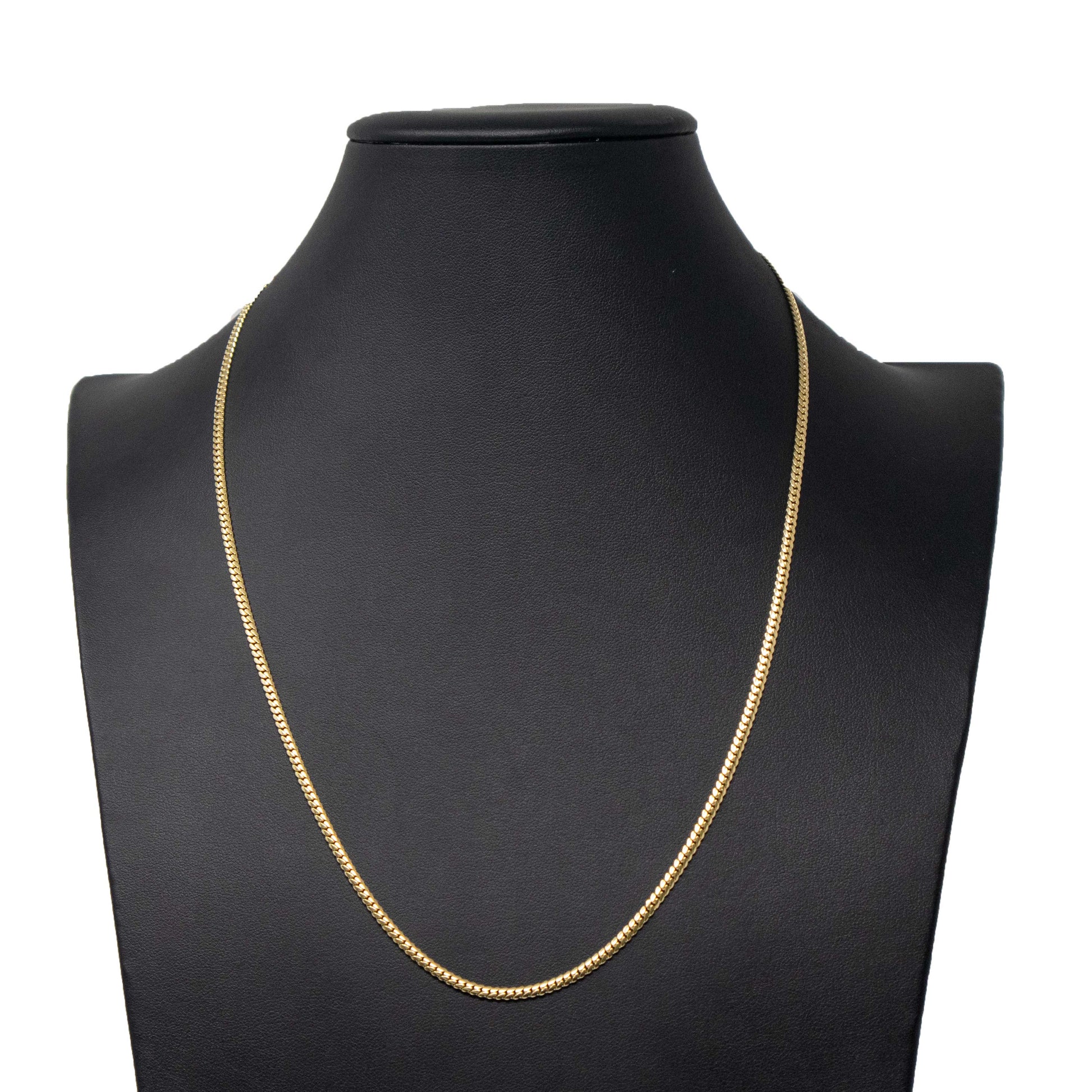 Crafted from 14 karat yellow gold, this type of chain features interlocking, uniform links that create a sleek and sturdy design. The warm, rich color of the gold complements a wide range of styles and outfits, making it a versatile accessory for both men and women.