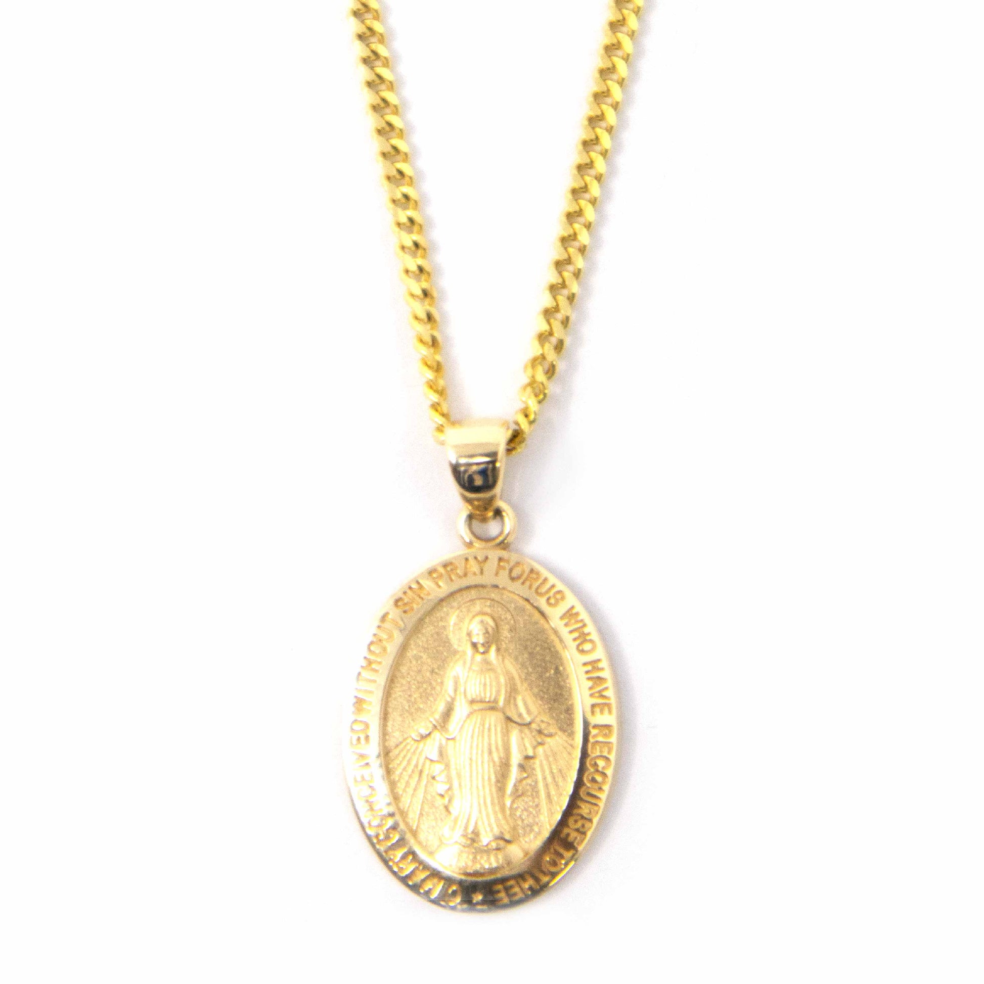 "Classic 14K yellow gold Virgin Mary pendant for a symbol of faith and grace."