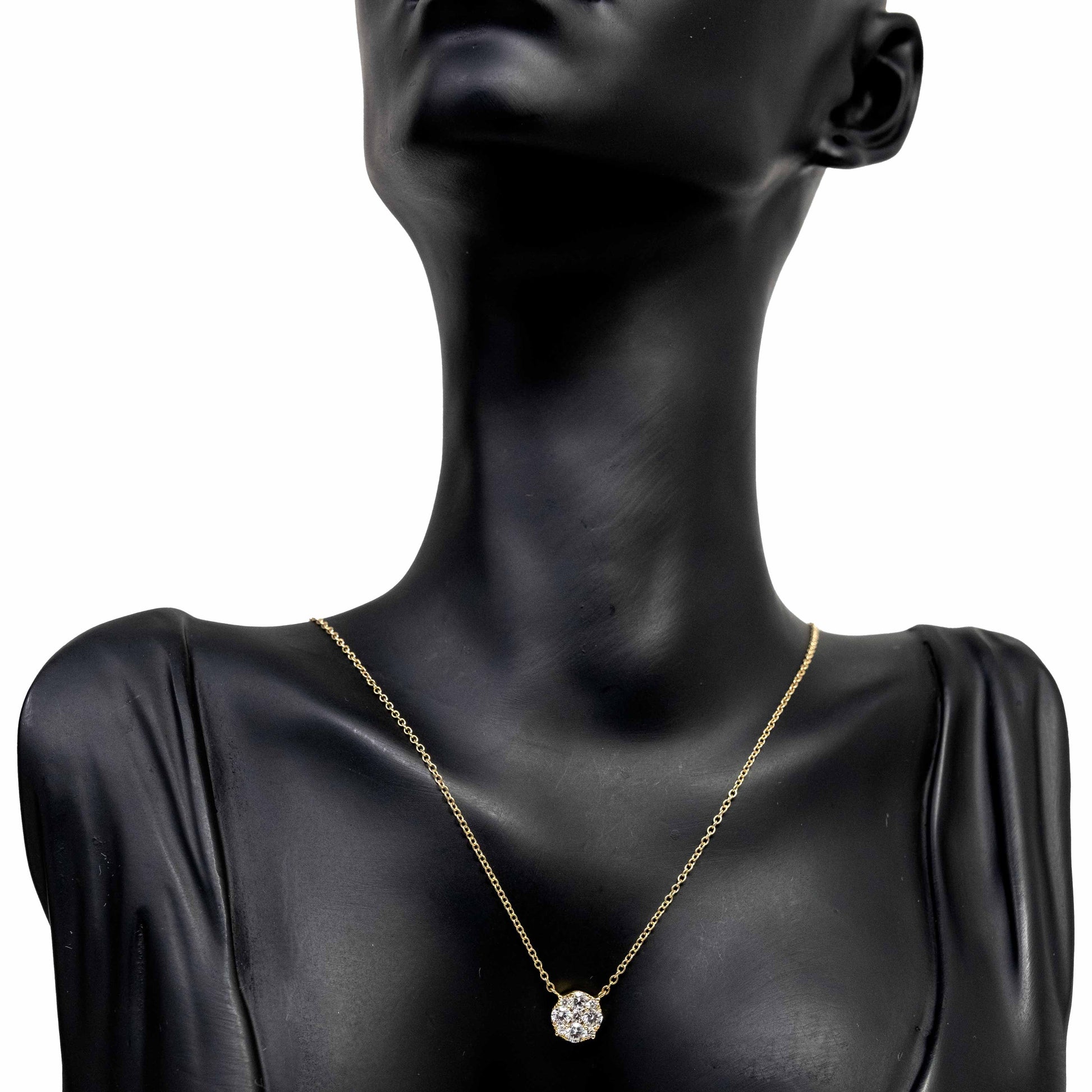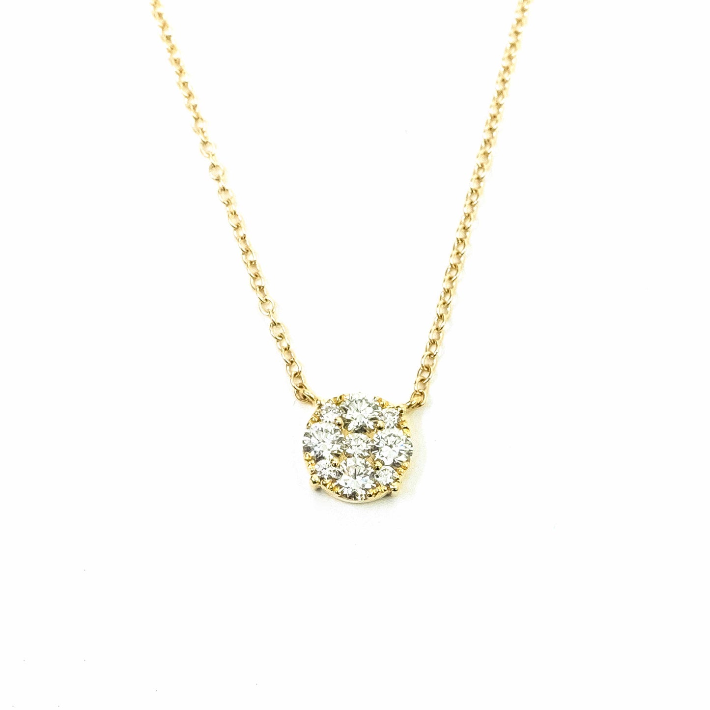 18K Yellow Gold Diamond Cluster Necklace. This necklace is perfect for everyday wear and is a great alternative to the classic diamond solitaire necklace.