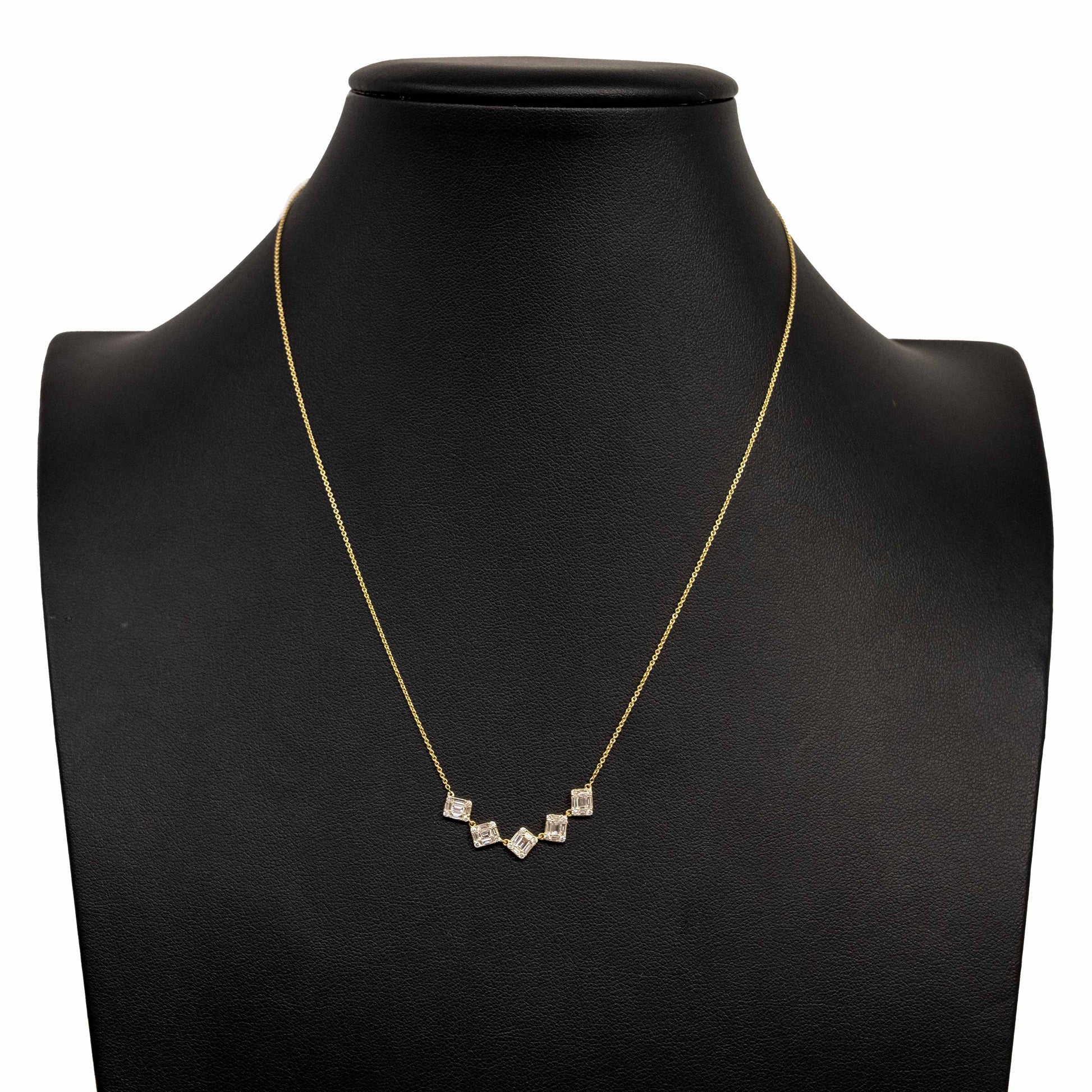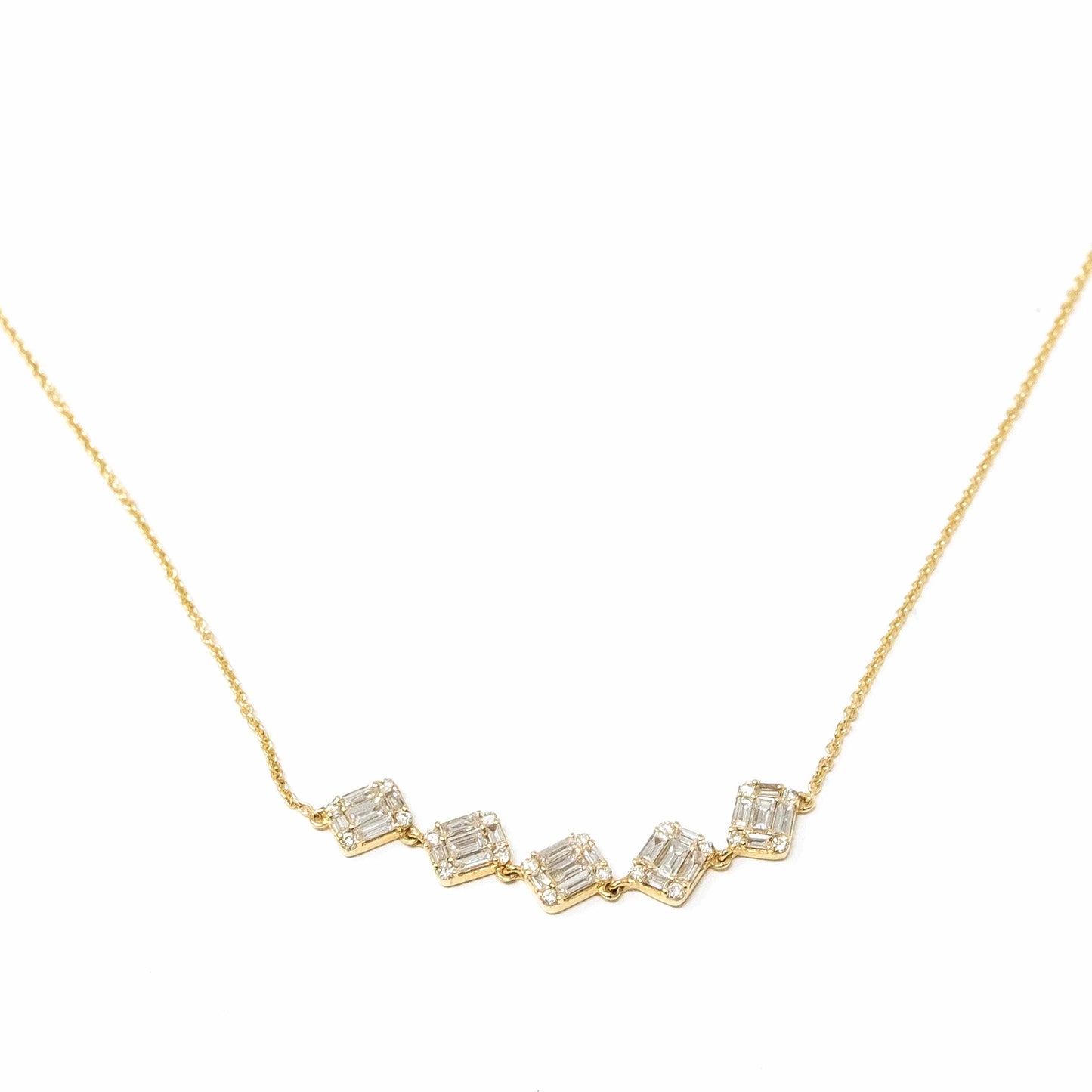 18K Yellow Gold Baguette Squares Diamond Necklace