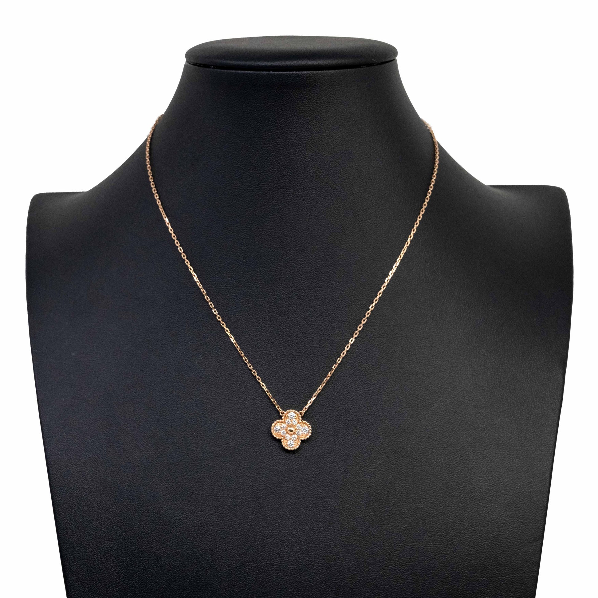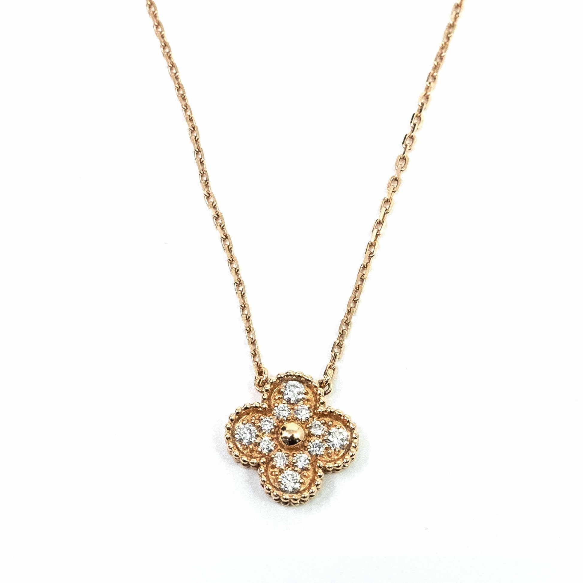18K Rose Gold Clover Diamond Pendant Necklace