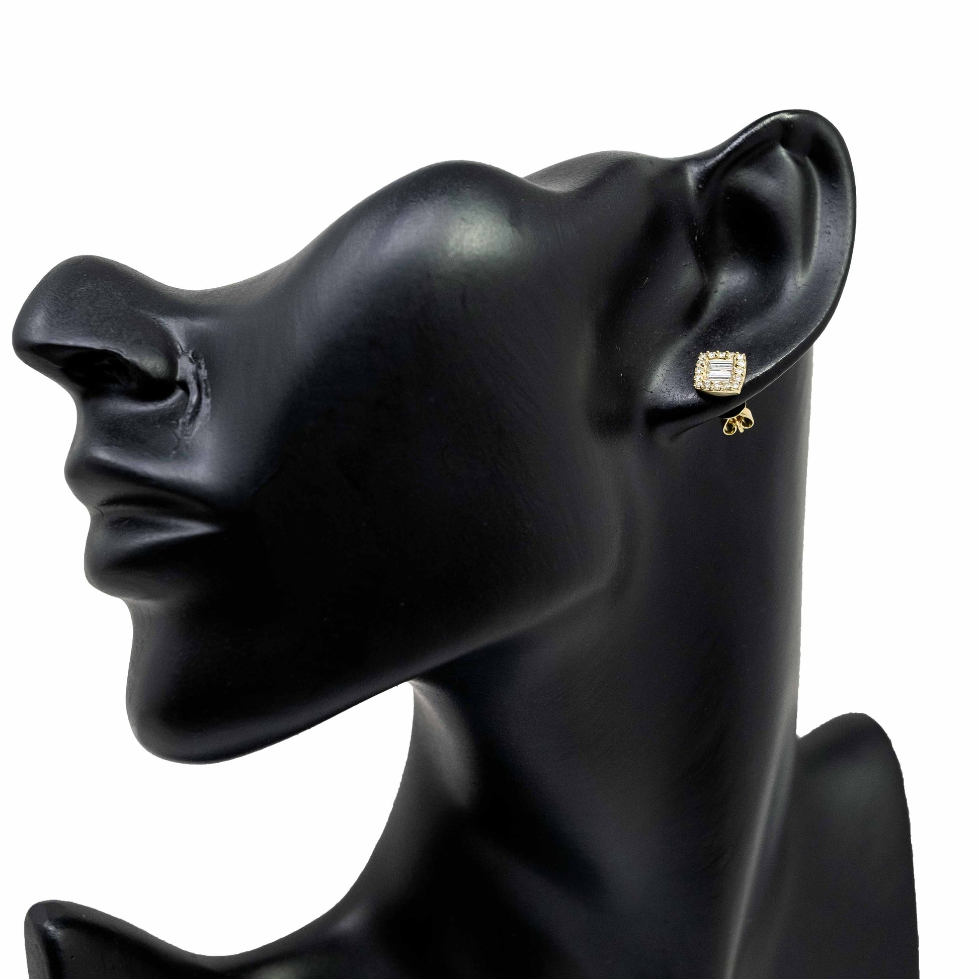 18K Yellow Gold Square Diamond Stud and Baguette Earrings