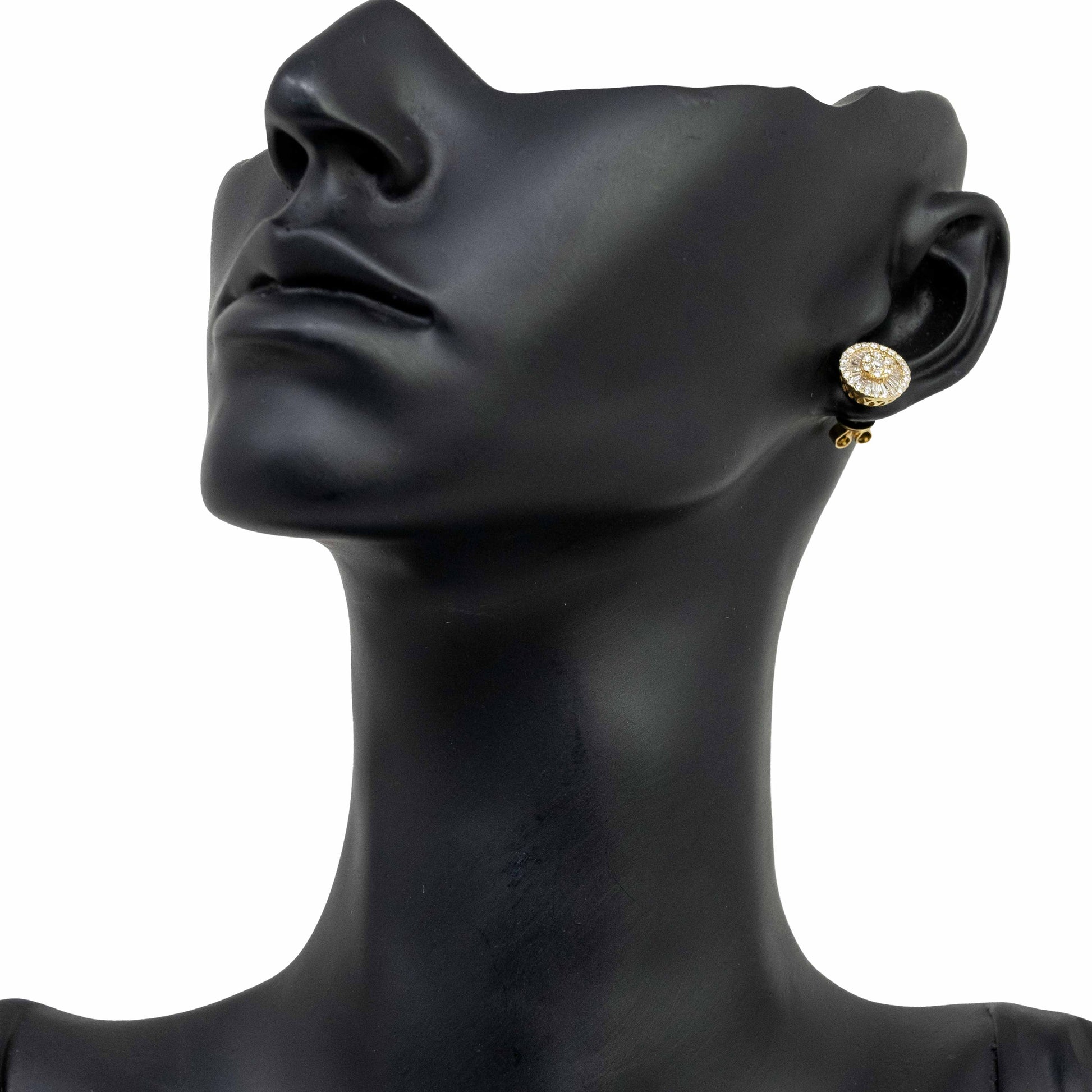 This Beautiful eye-catching and stunning diamond earring will be treasured forever. Bright center clusters of round cut diamonds shine even brighter amidst sparkling halos of baguette cut diamonds emitting a dazzling display of sparkle, delivering an eye-catching shimmer.