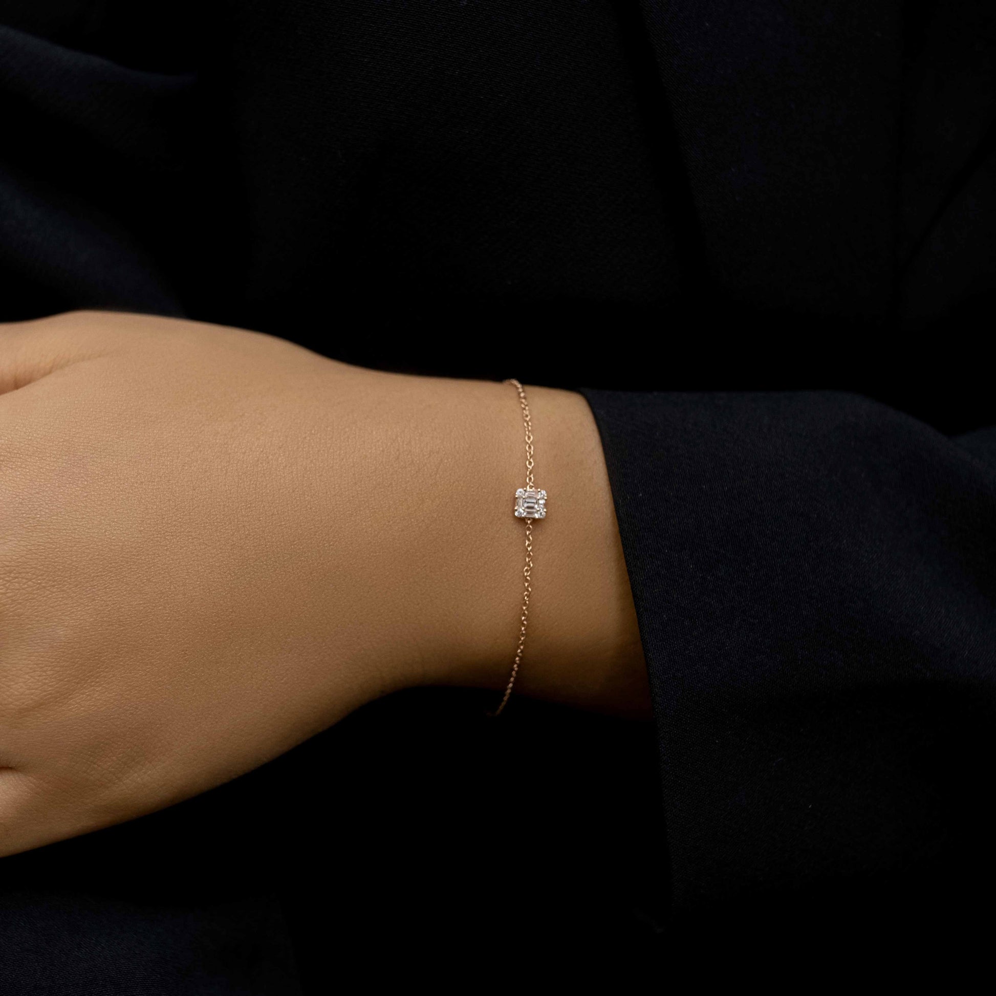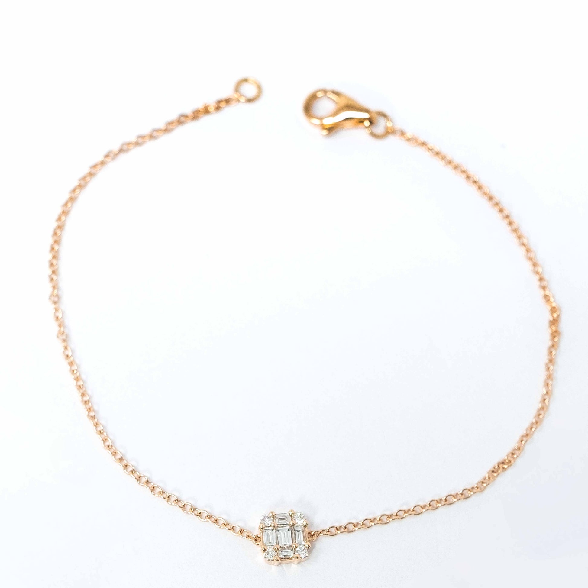 18K Rose Gold Baguette Square with Link Chain Bracelet