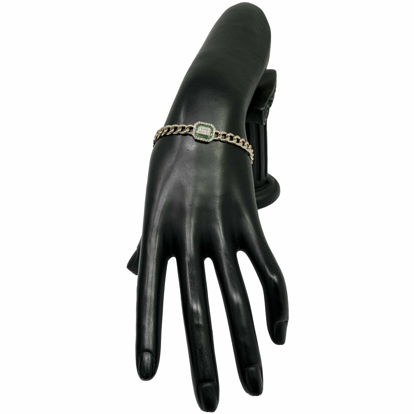 14K Yellow Gold Emerald and Diamond Cuban Link Bracelet