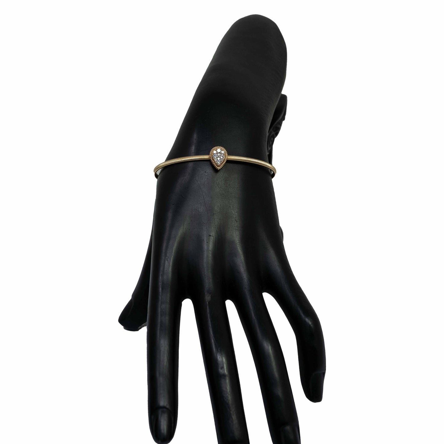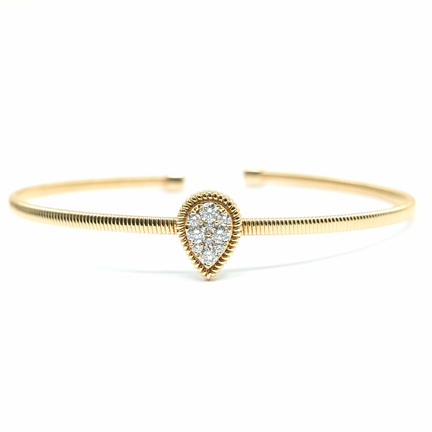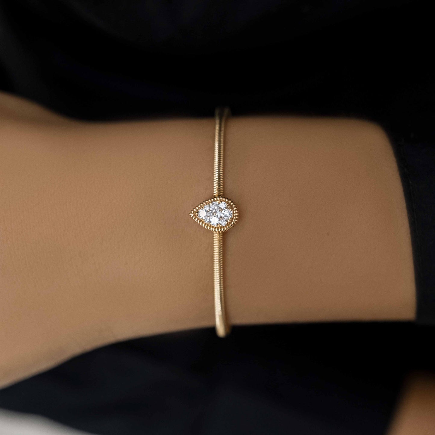 This diamond bangle's elegant minimal design makes for a lovely piece to accentuate casual looks or even a subtle touch-of radiance to a formal look. Ideal for stacking, this minimal diamond bangle can be worn alone or paired with some of our other bangles for a luxurious twist to the classic stacked look. Grace your wrist with this classic diamond bangle.