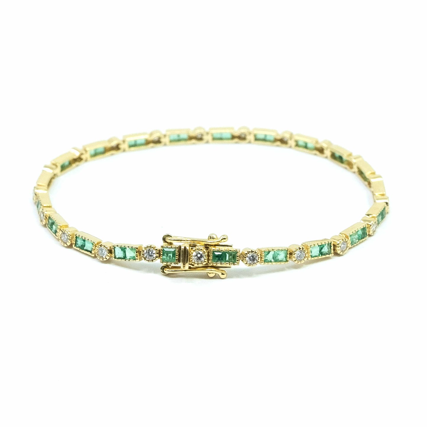18K Yellow Gold, Emerald and Diamond Bracelet