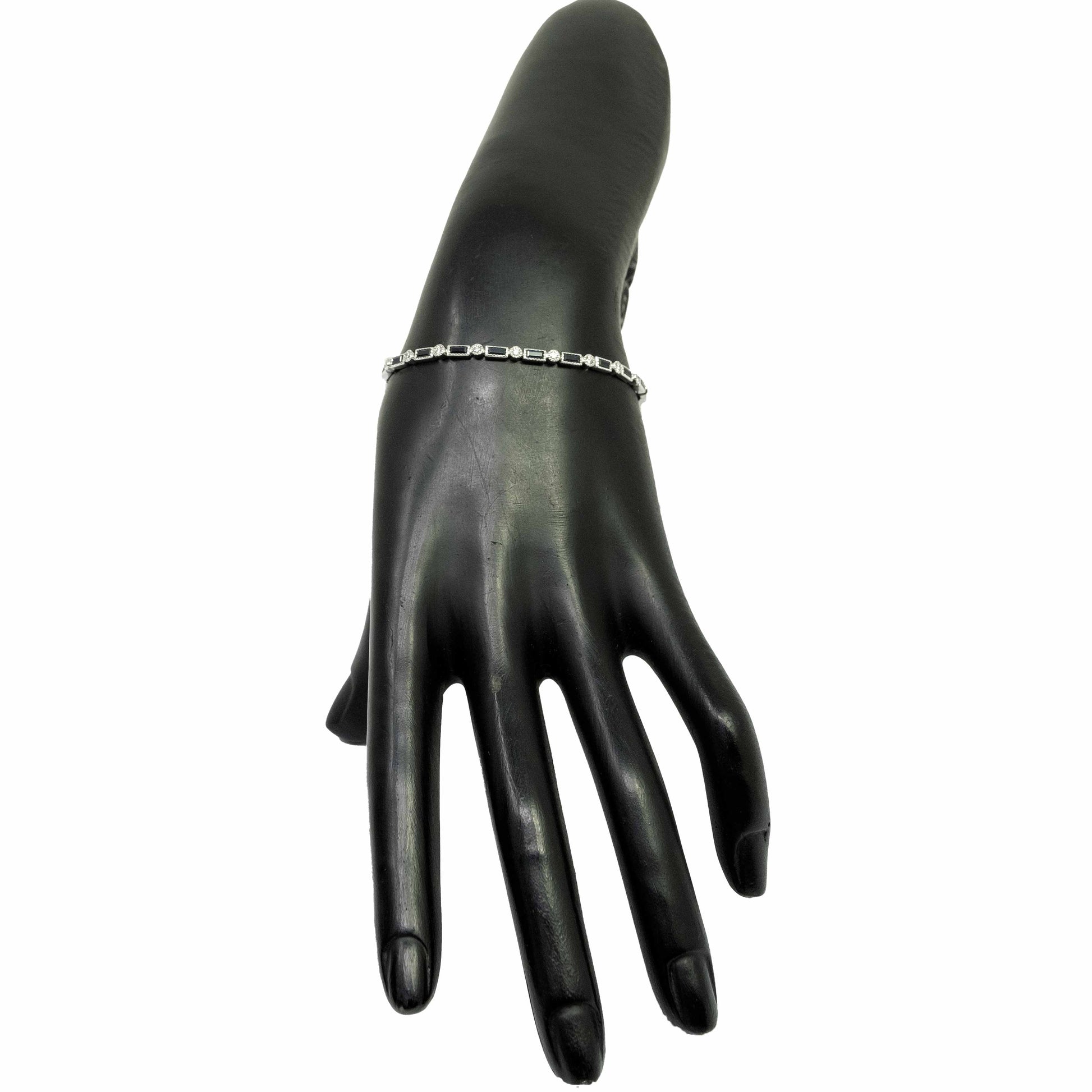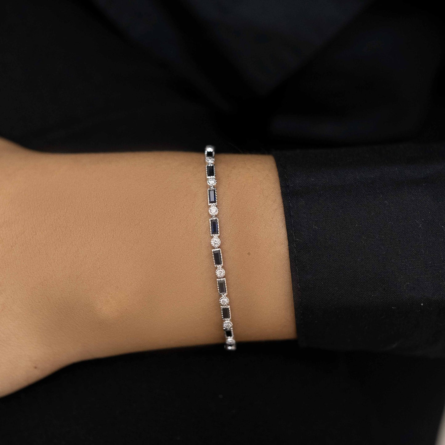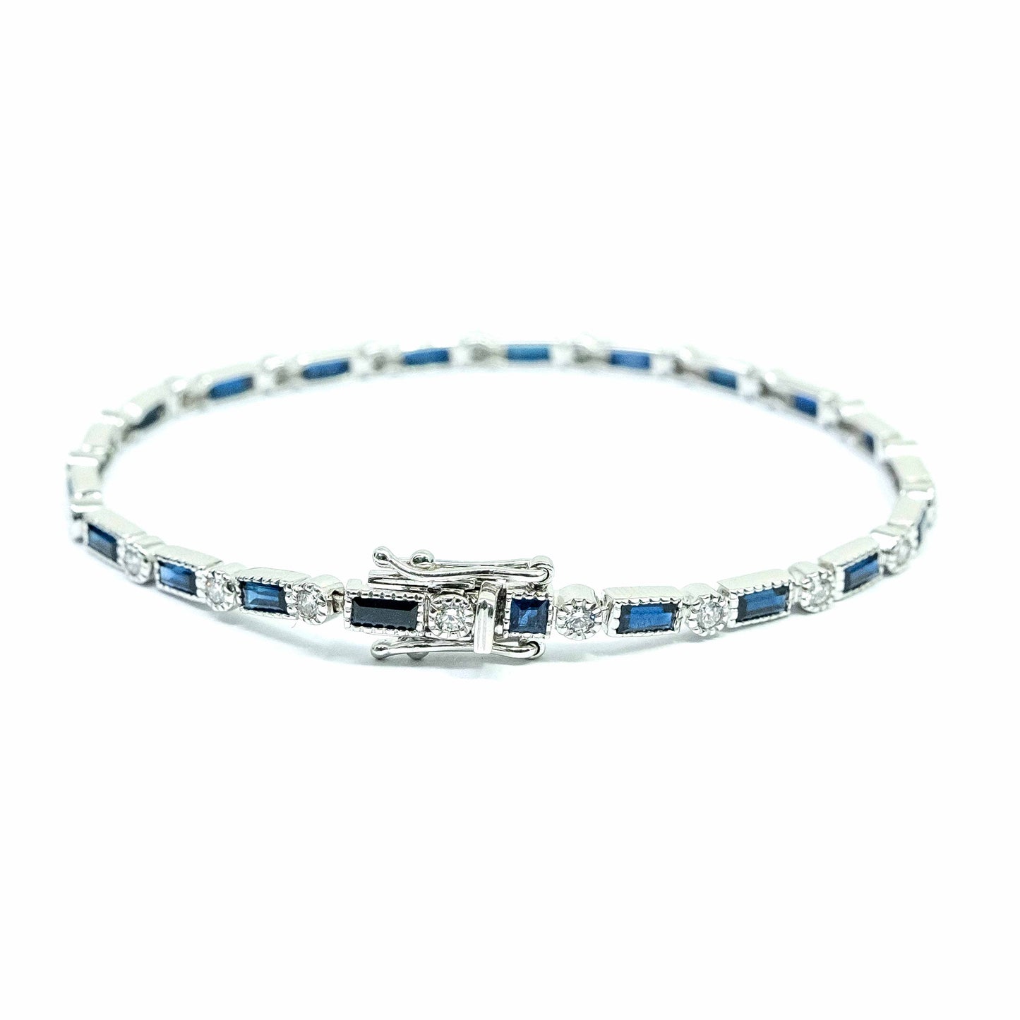 18K White Gold, Sapphire and Diamond bracelet. A touch of color to your added favorites stands out.