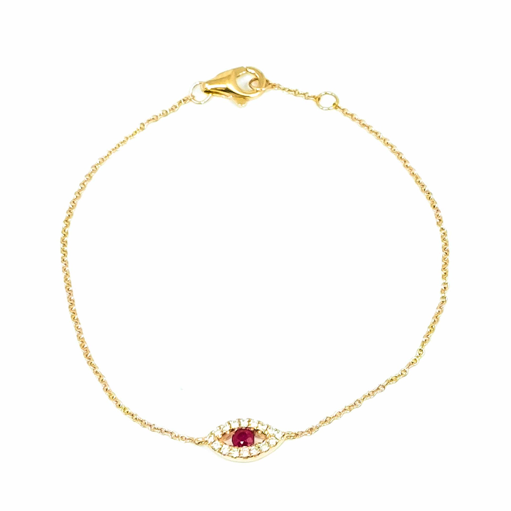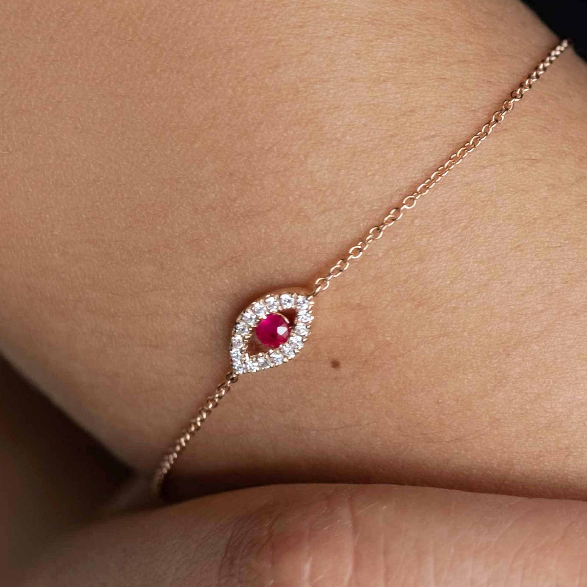 18K Rose Gold Ruby and Diamond Evil Eye Bracelet