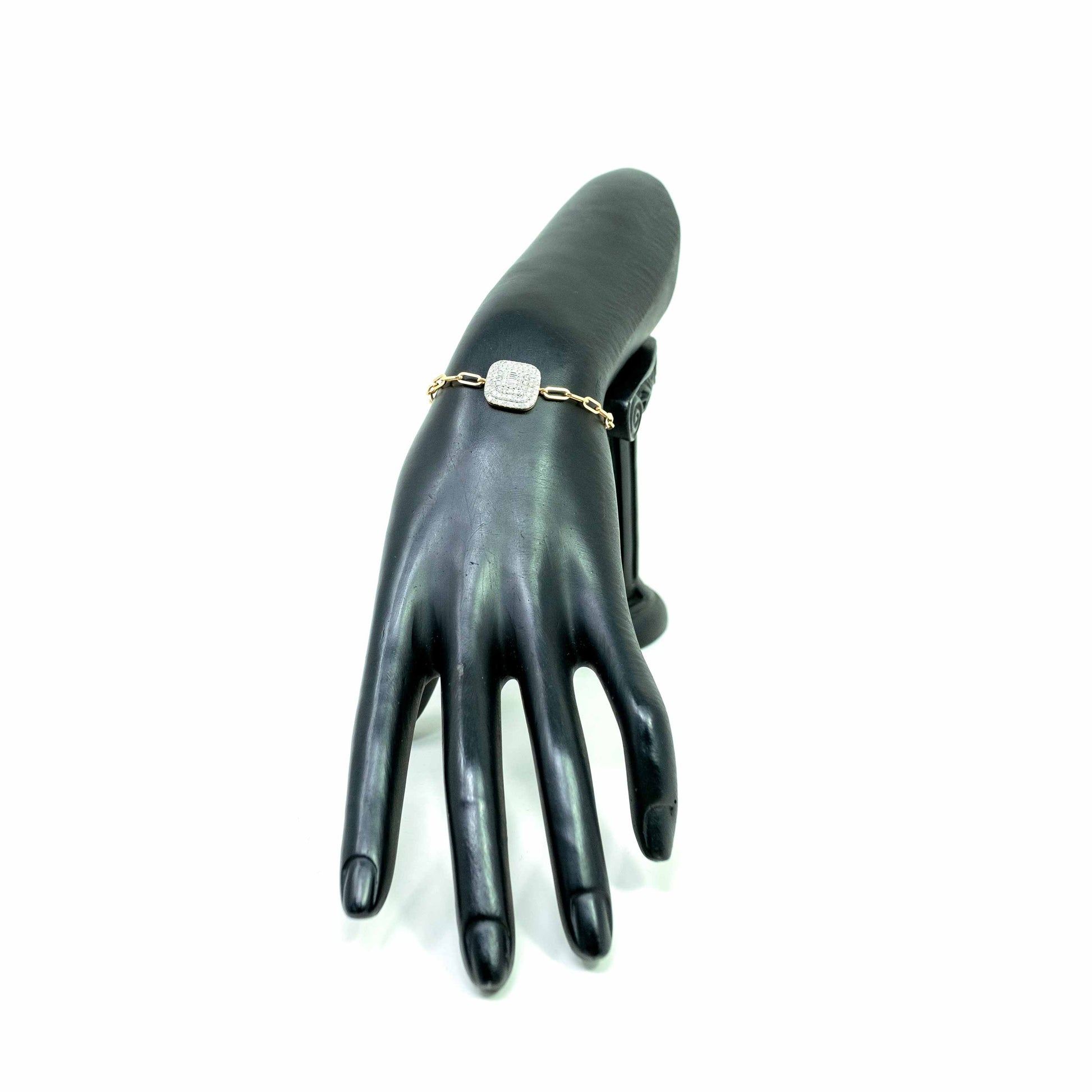 14K Yellow Gold and Diamond Square Cube Paperclip Bracelet