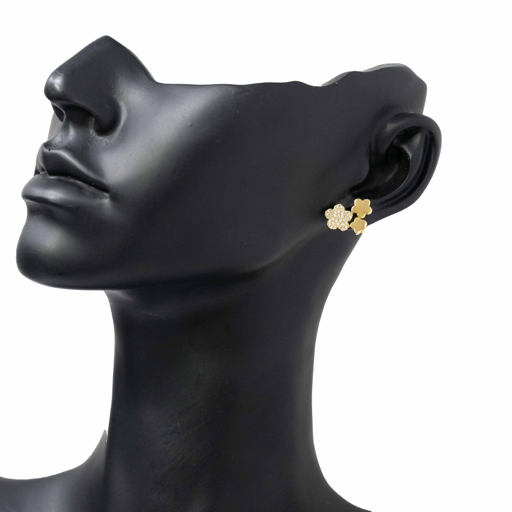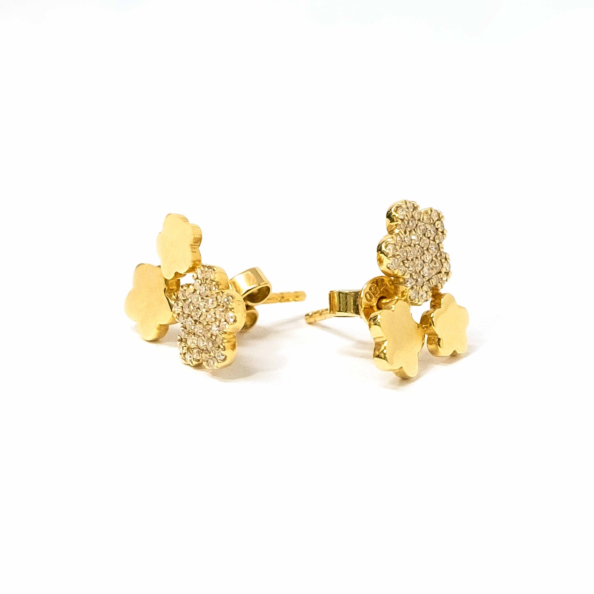 18K Yellow Gold Triple Fleur Diamond Earrings