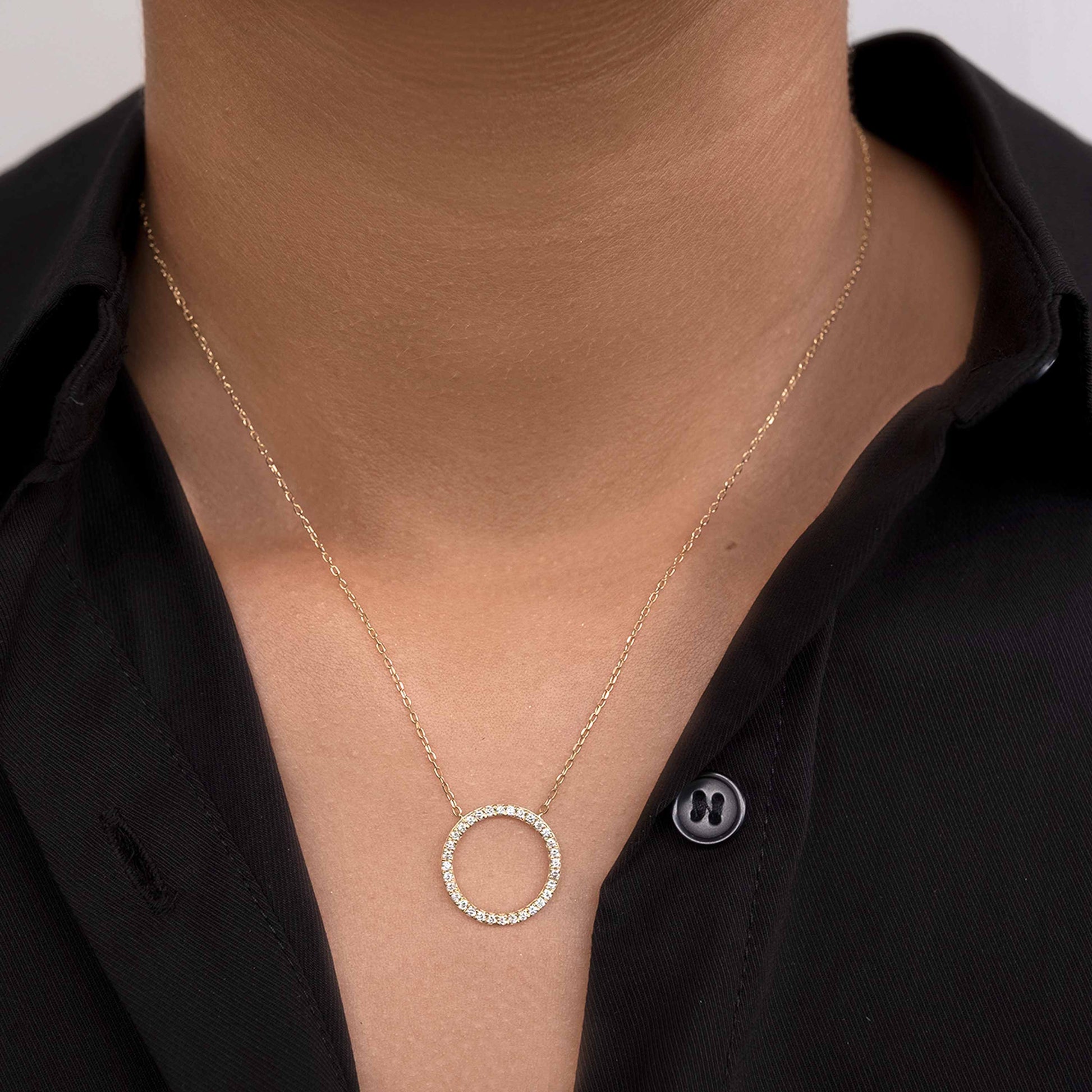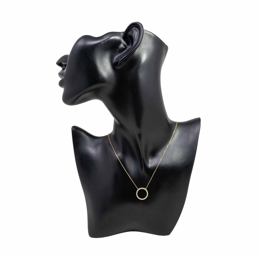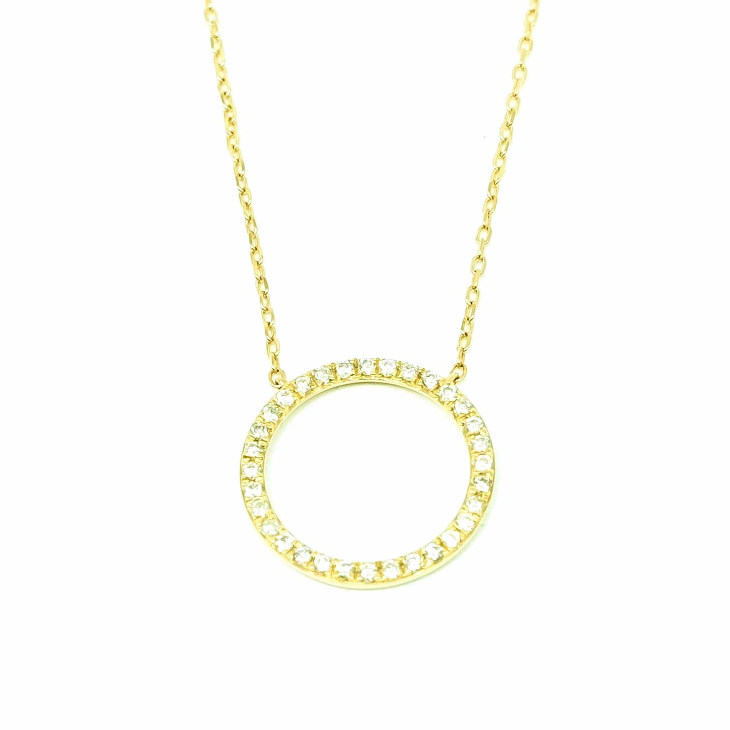 18K Yellow Gold Circle Diamond Pendant Necklace