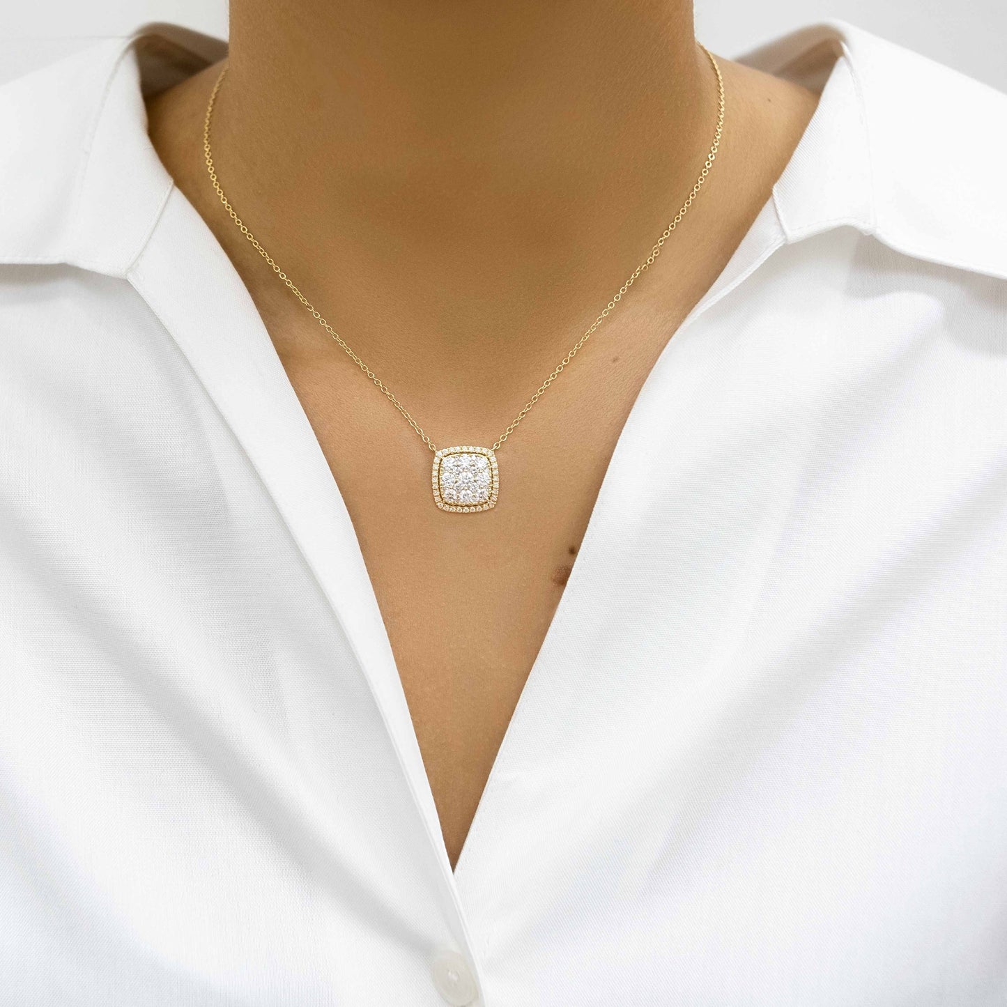 Sparkle in style with our 18k yellow gold square diamond pendant necklace! Elevate your look with the timeless allure of dazzling diamonds. Shop now for a touch of luxury and a whole lot of sparkle!