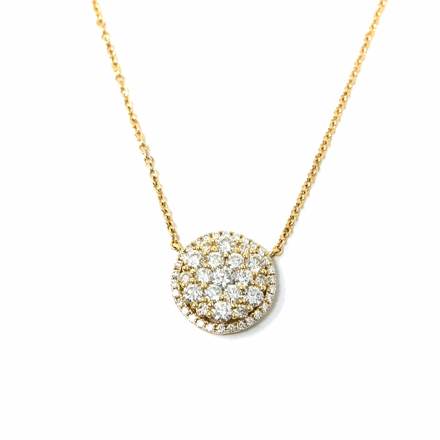 This elegant 18K yellow gold necklace showcases a classic round diamond pendant, exuding timeless sophistication and grace. Perfect for any occasion, the necklace is a versatile and luxurious addition to any jewelry collection.