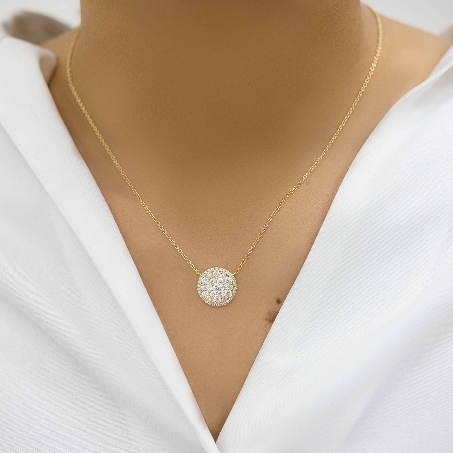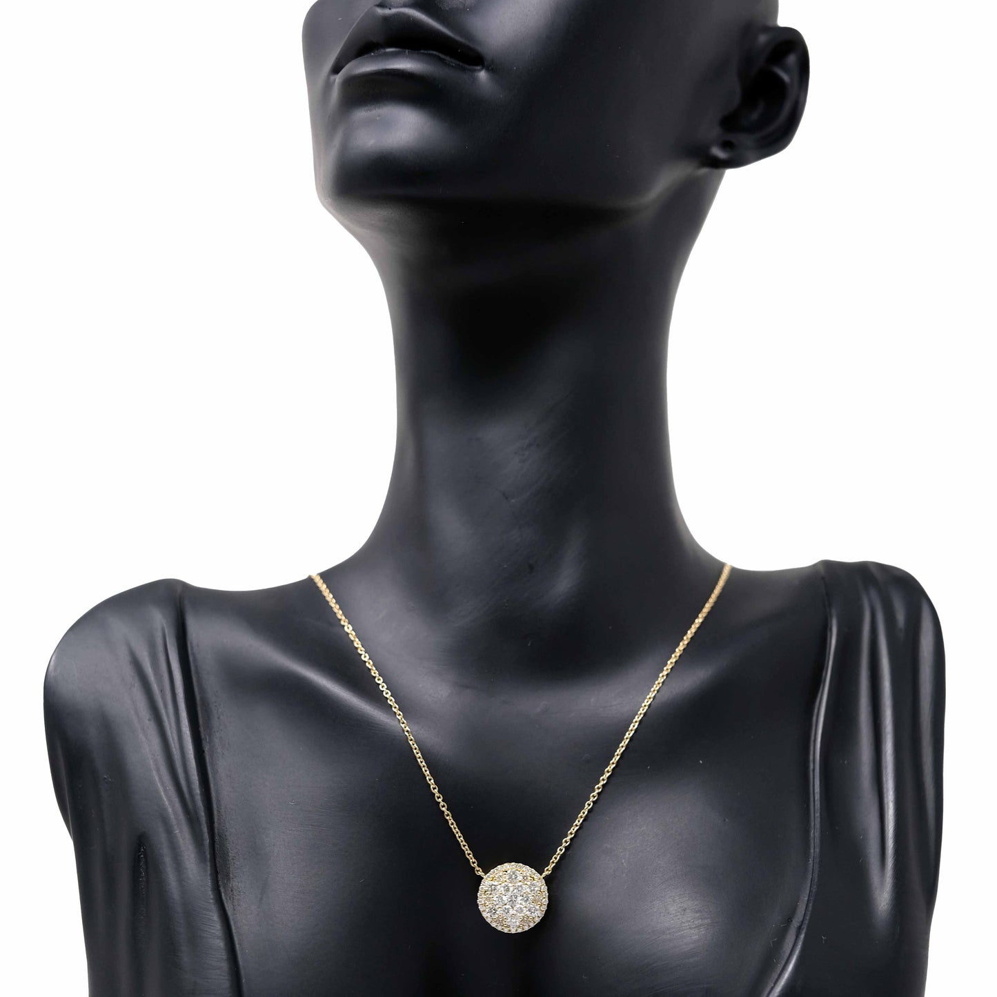 18K Yellow Gold Classic Round Diamond Pendant Necklace.