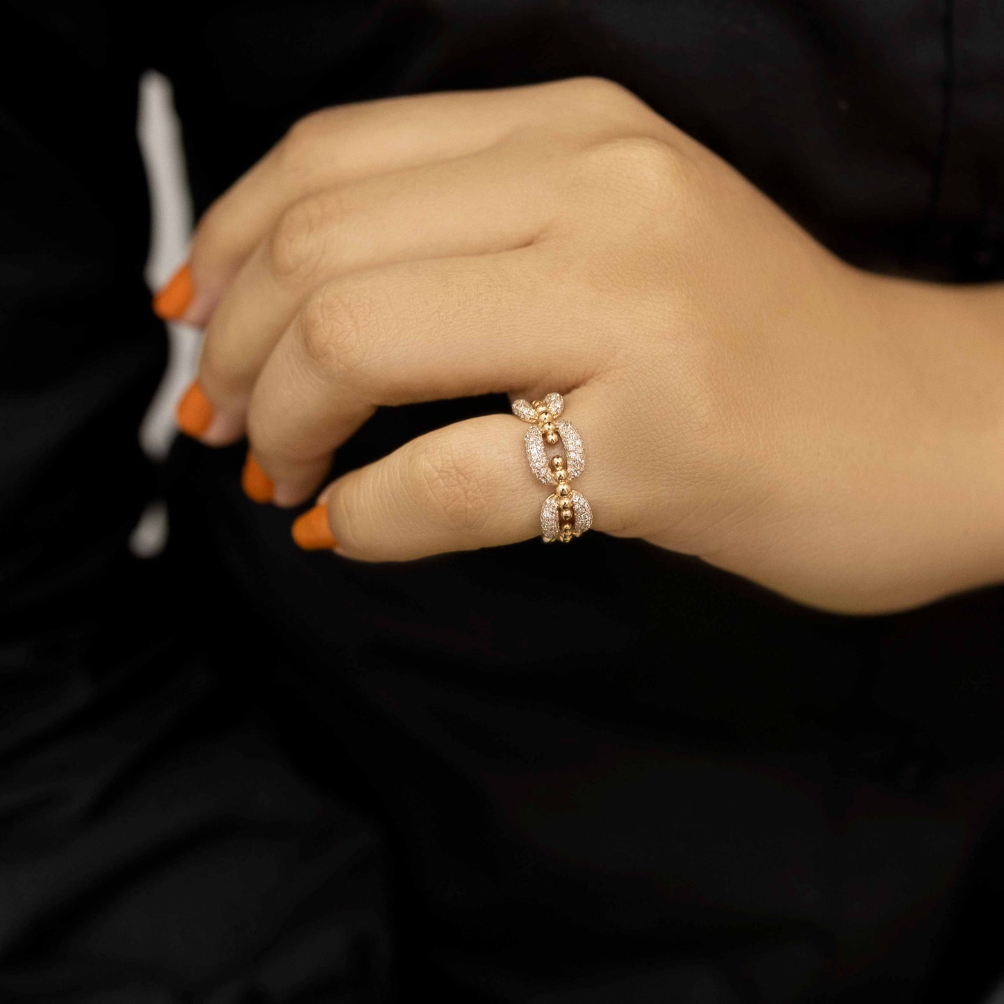 Super cool Gucci link inspired design, handcrafted in 18k rose gold. This ring epitomizes vintage charm and would make a lovely compliment to any outfit. The perfect accessory for the modern woman. Classic and Chic, ready to wear from day to evening with style and grace.