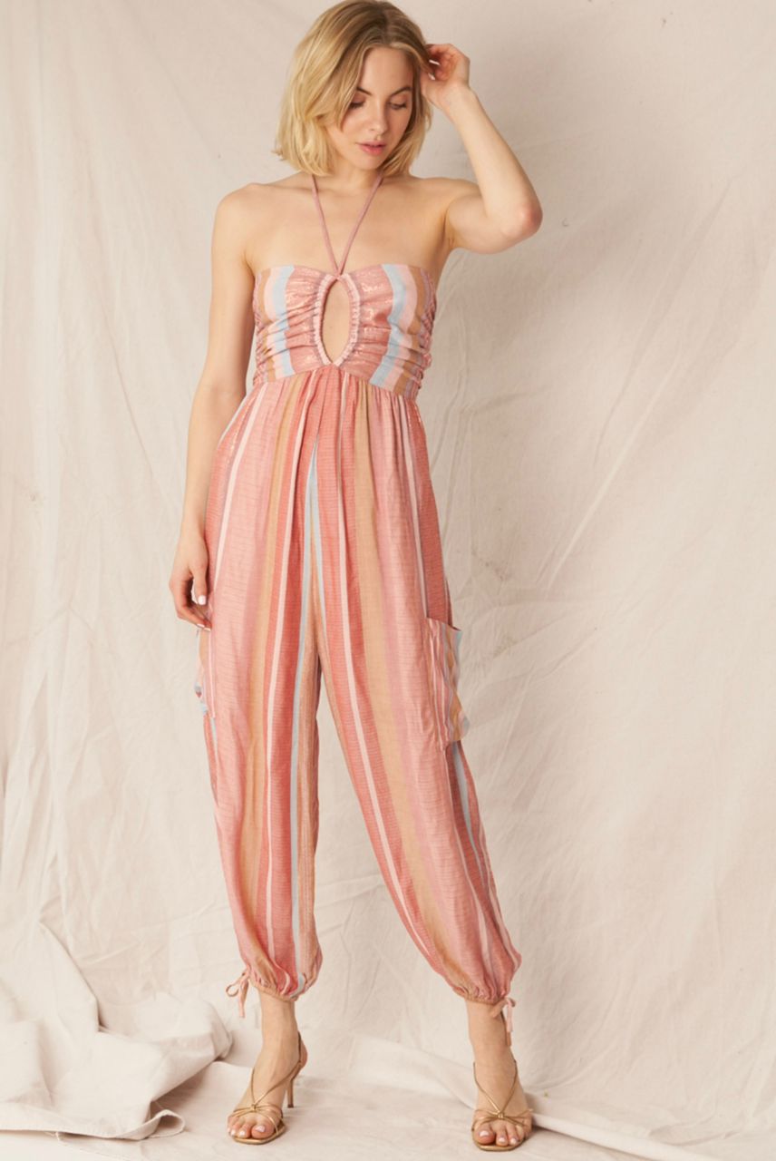 En Creme Multi Halter Neck Jumpsuit with Lurex