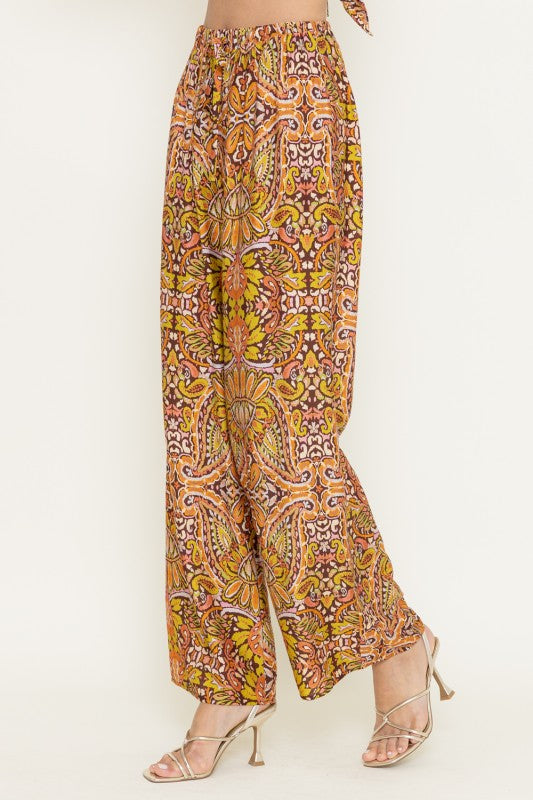 Fore Multi Scarf Style Tied At Back Top with Matching Pants Set