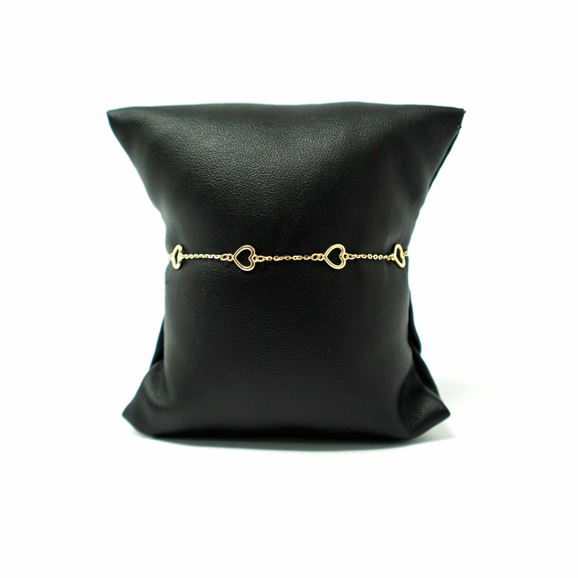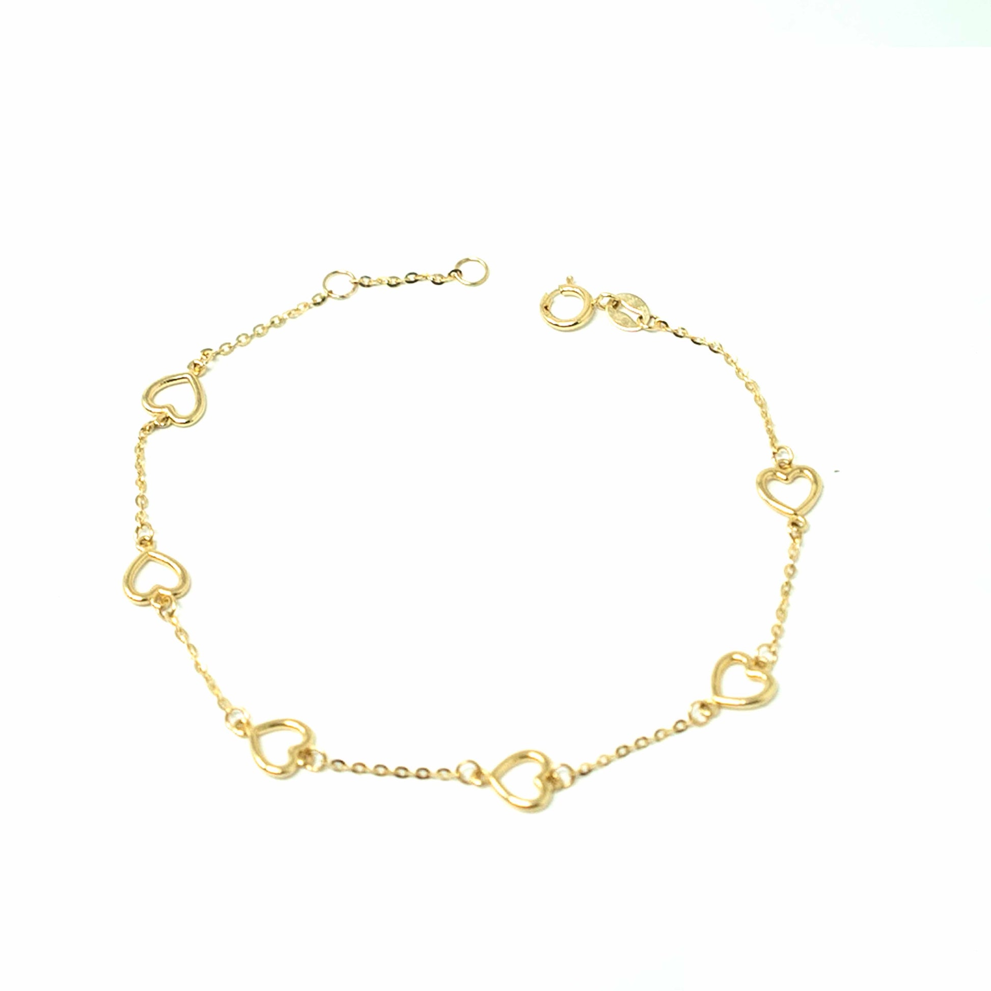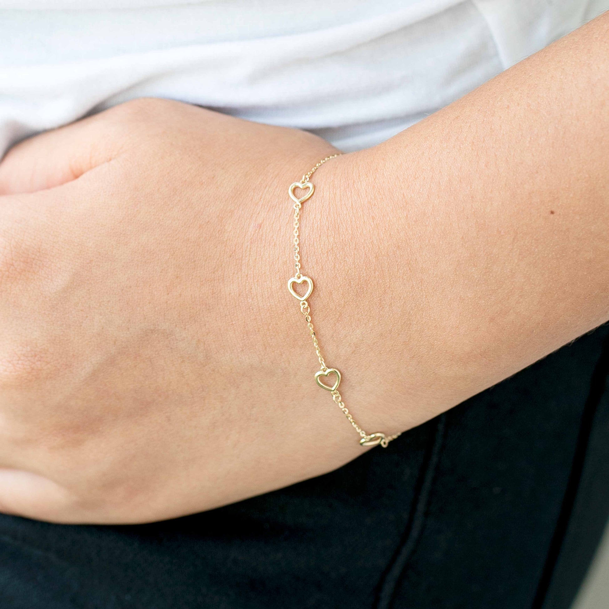 Add a touch of elegance to your ensemble with our 14K yellow gold open Hearts bracelet. Elevate your style with timeless sophistication.