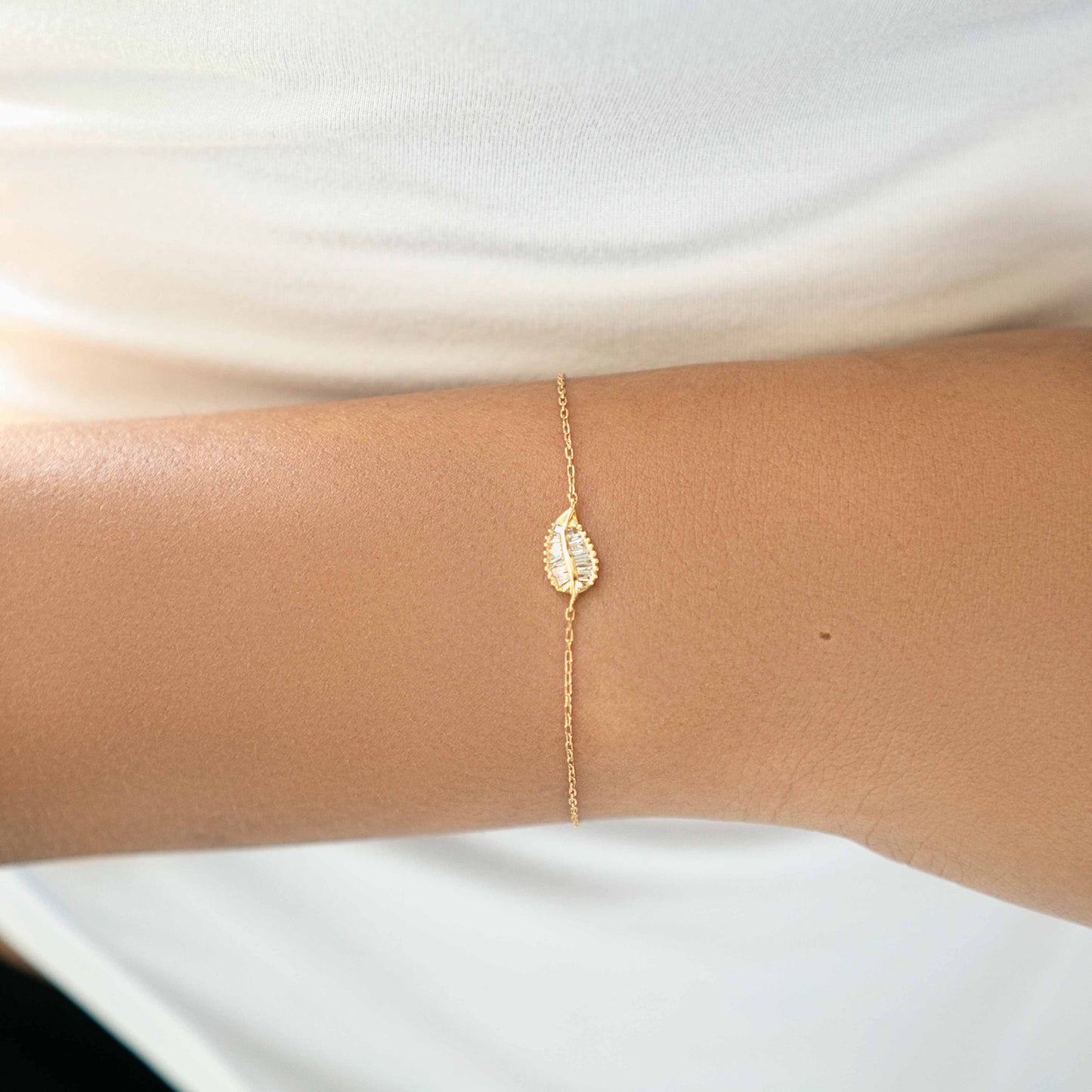 18K Yellow Gold Leaf Diamond Pendant Bracelet
