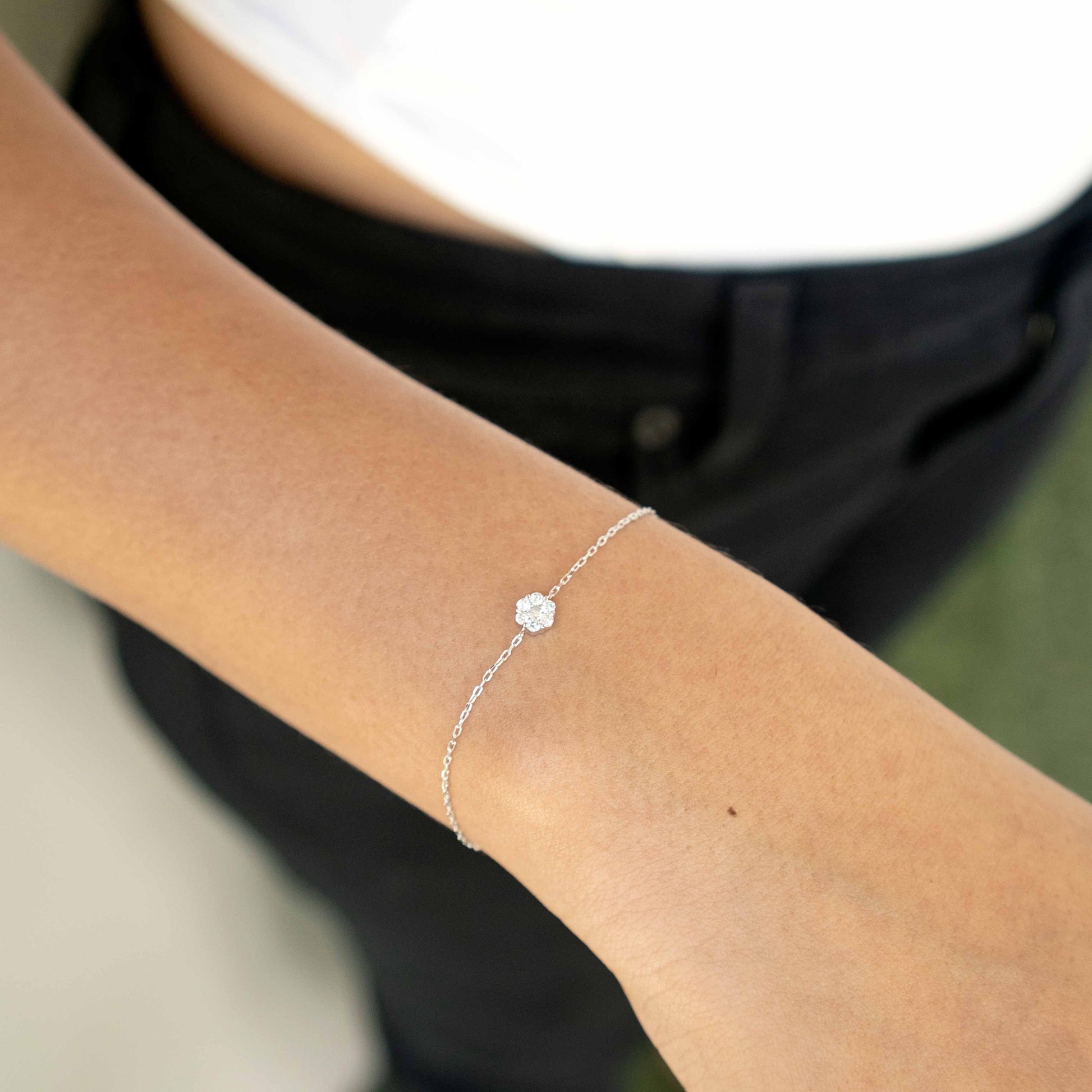 Adorn your wrist with elegance and radiance. Our 18K White Gold Cluster Flower Diamond Bracelet is a stunning addition to any jewelry collection.