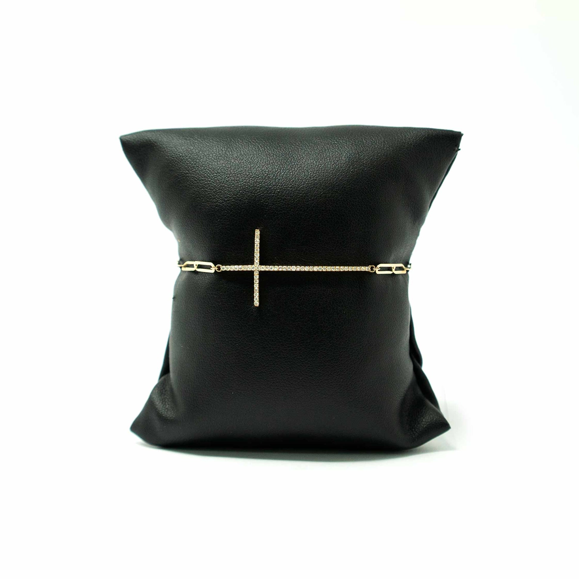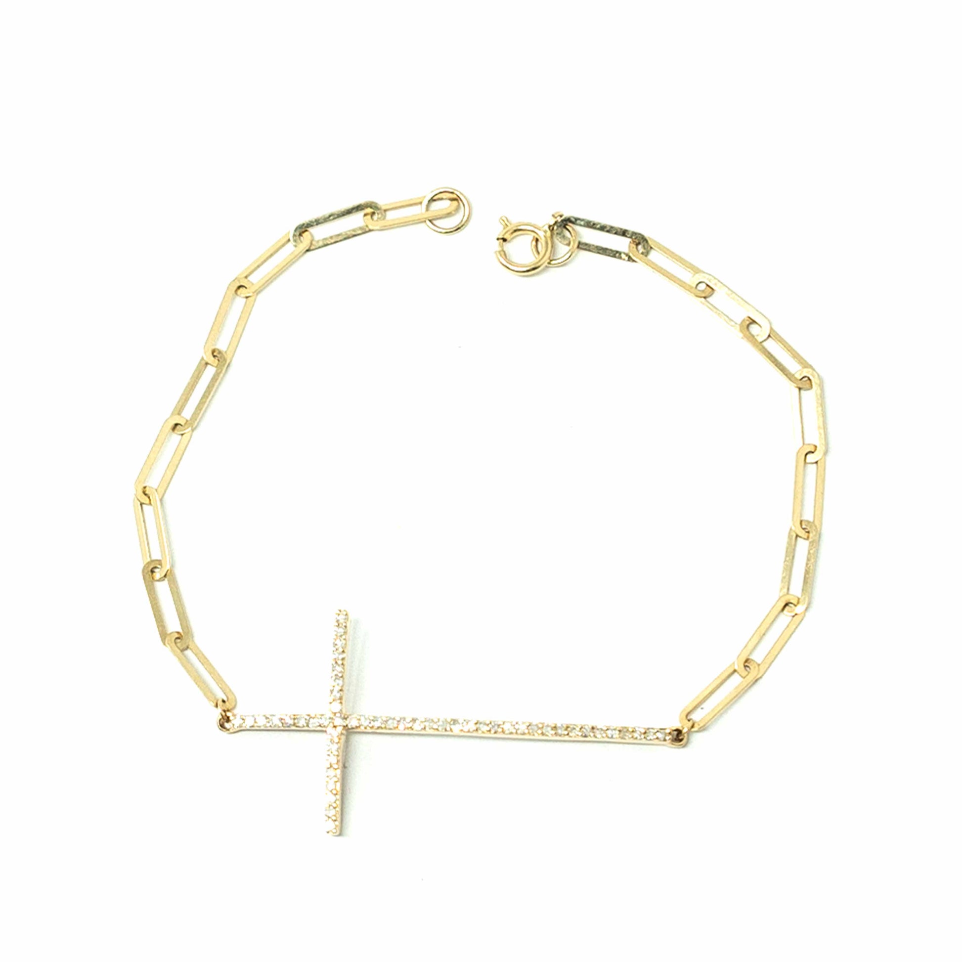14K Yellow Gold Paperclip Diamond Cross Bracelet
