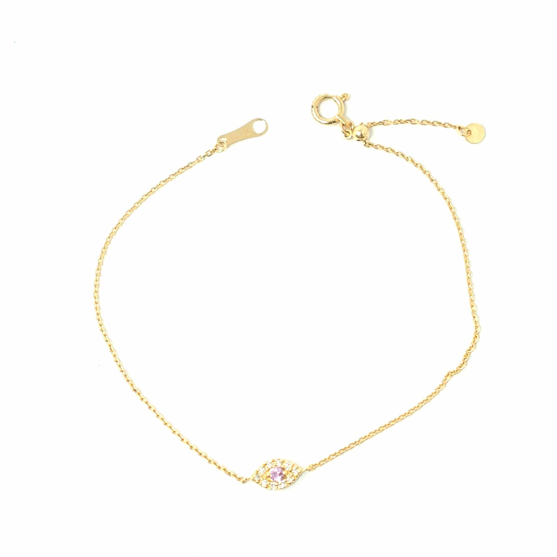 18K Yellow Gold Evil Eye Pink Sapphire & Diamond Bracelet